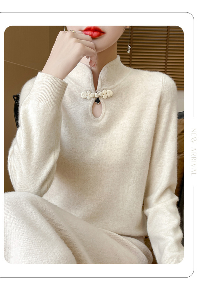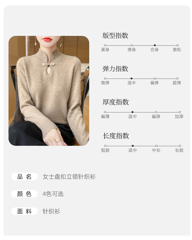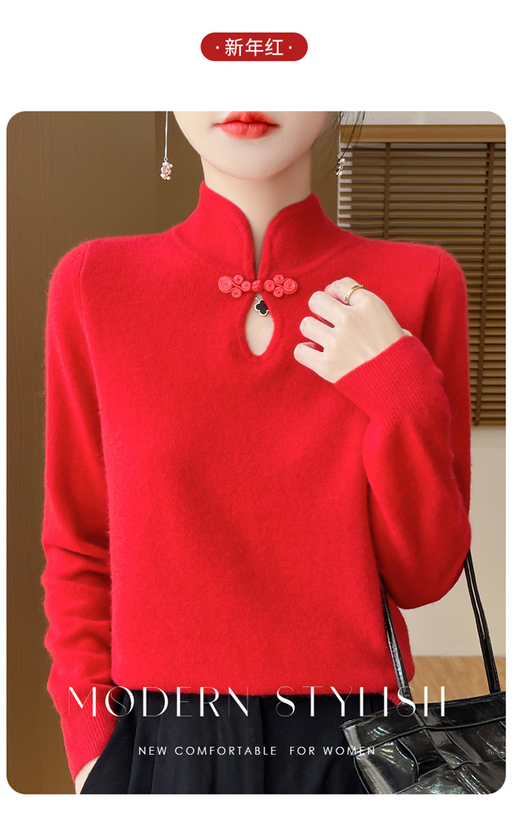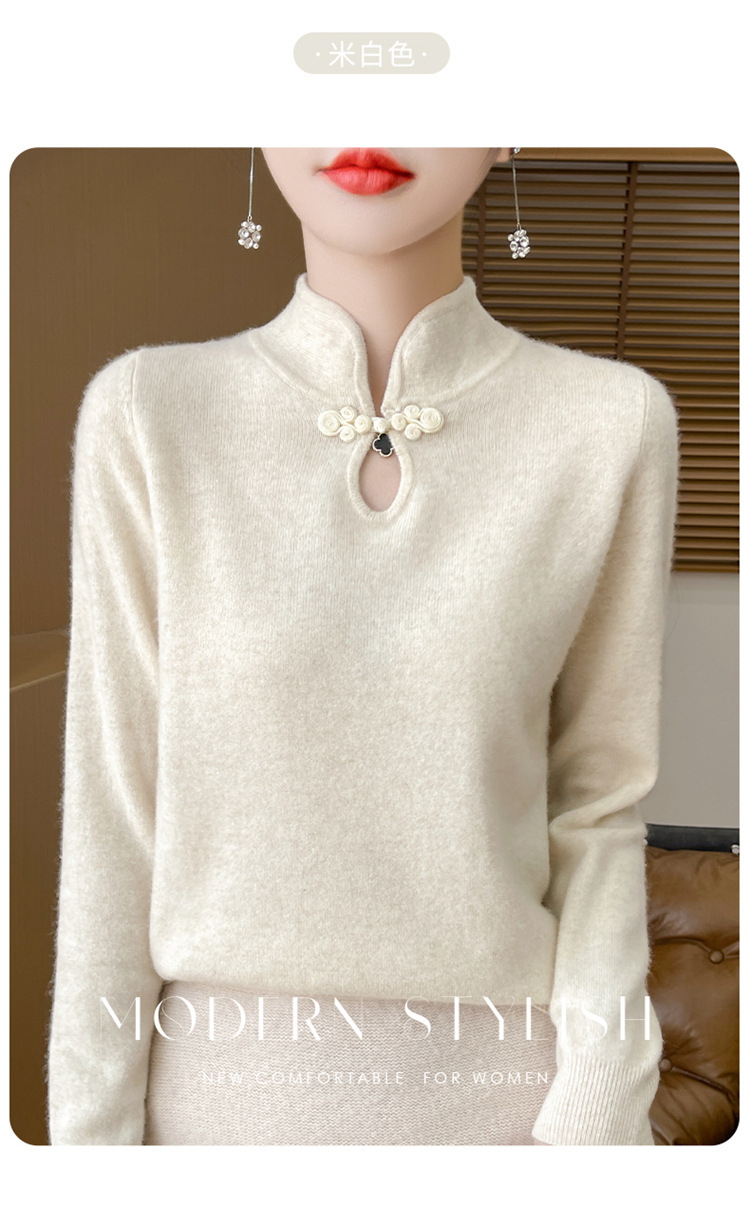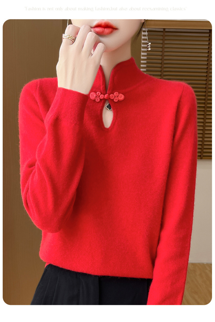 2025 가을 겨울 신상품, 새로운 중국풍 스타일의 스탠드 칼라 스웨터, 여성용 슬림핏 루즈핏 베이스 셔츠, 니트웨어 상의 도매스토어 가기