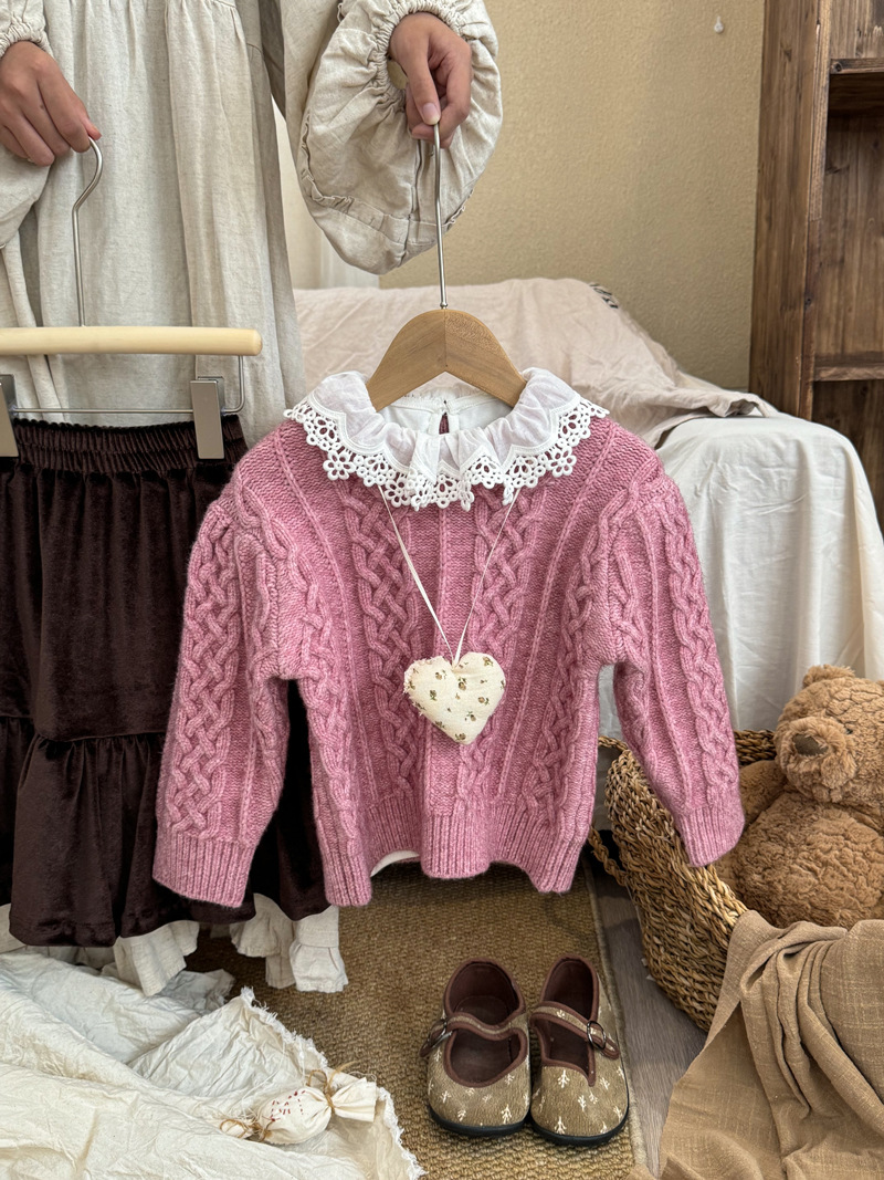 밀밭 시즌 2024 가을 겨울 신상 아동복 한국 스타일 여아용 두꺼운 트위스트 스웨터 아동용 풀오버 스웨터 재킷스토어 가기
