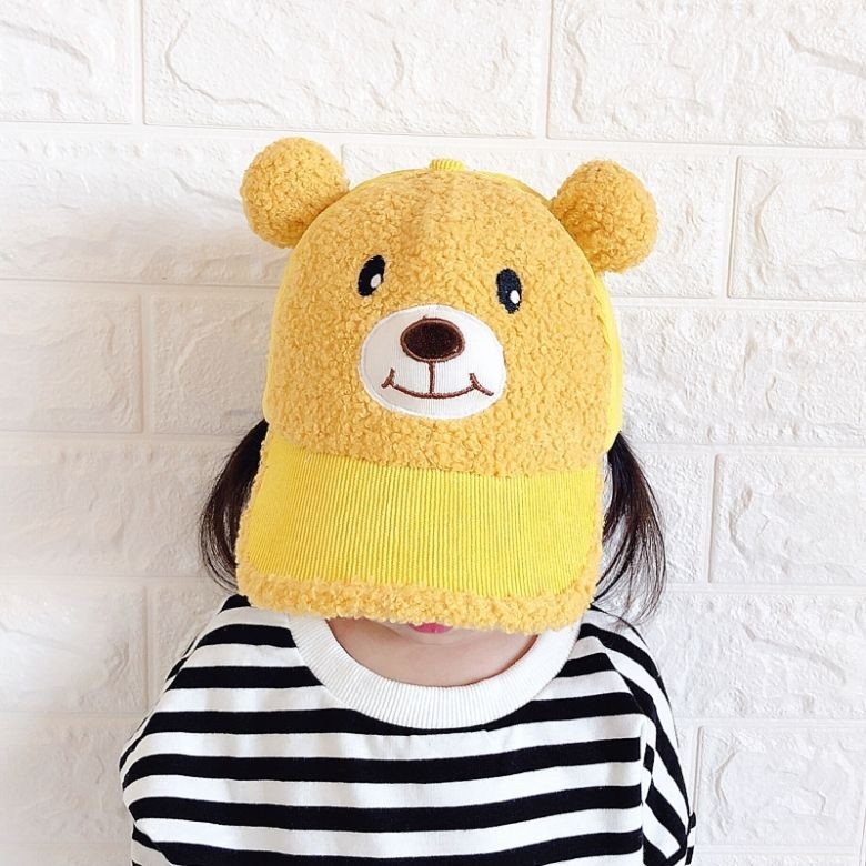 가을과 겨울 어린이 야구 모자 벨 야구 모자 코는 기모 만화 귀여운 곰 모자 클래식 따뜻한