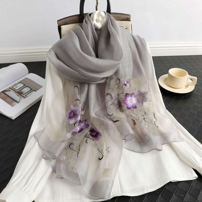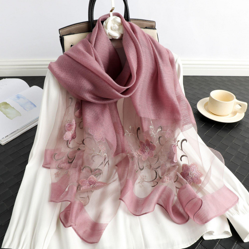 재고 새로운 실크 울 하이 엔드 자수 긴 목도리 올매치 여자 자수 실크 스카프 툴 장식 스카프스토어 가기