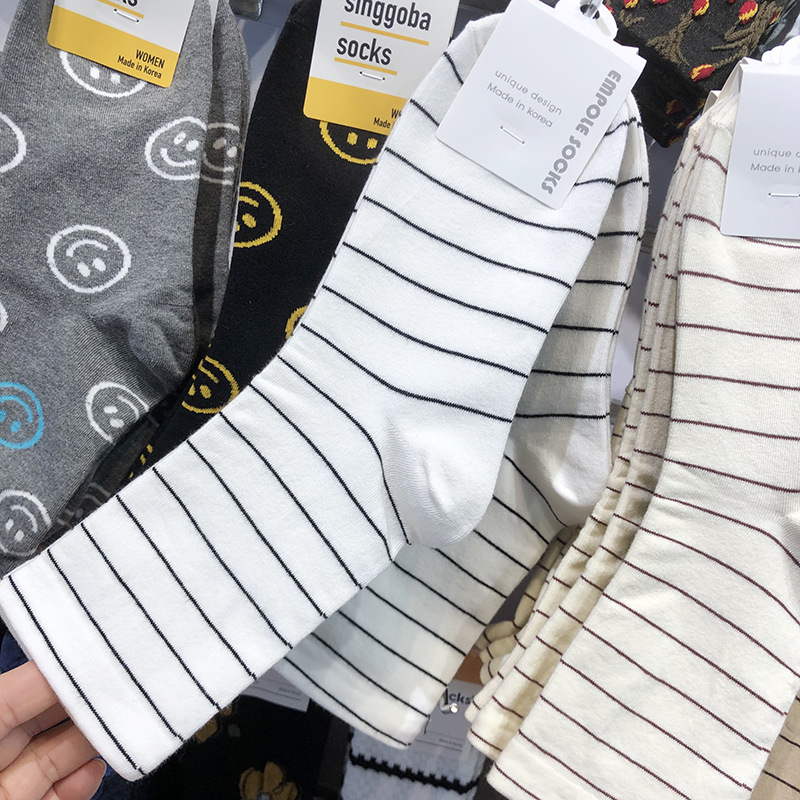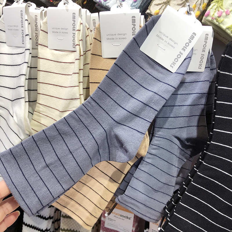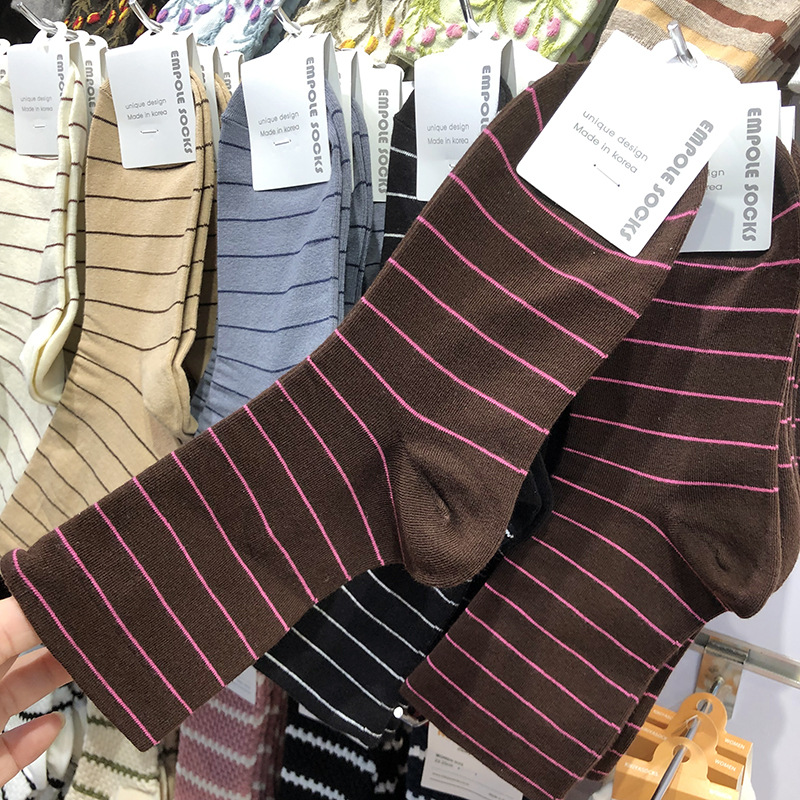 한국 2024 가을과 겨울 새로운 양말 miu 핀스트라이프 여성 양말 EMPOLE 느슨한 가장자리 일본 조수 면화 양말스토어 가기