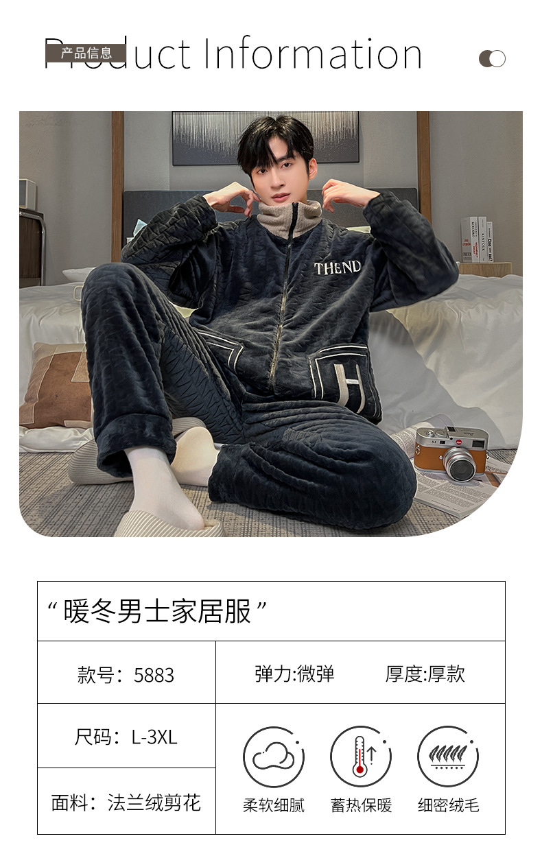 봉제 파자마 남자 겨울 긴팔 풀오버 두꺼운 따뜻한 캐주얼 간단한 겨울 플란넬 홈 의류 세트
