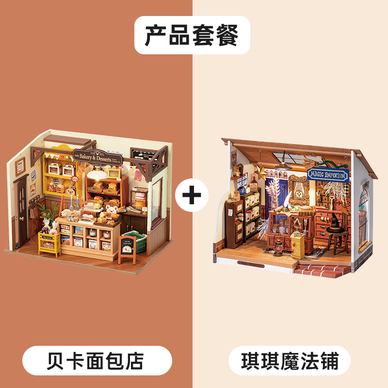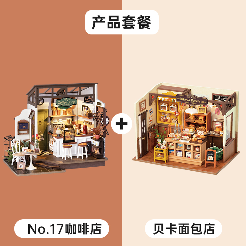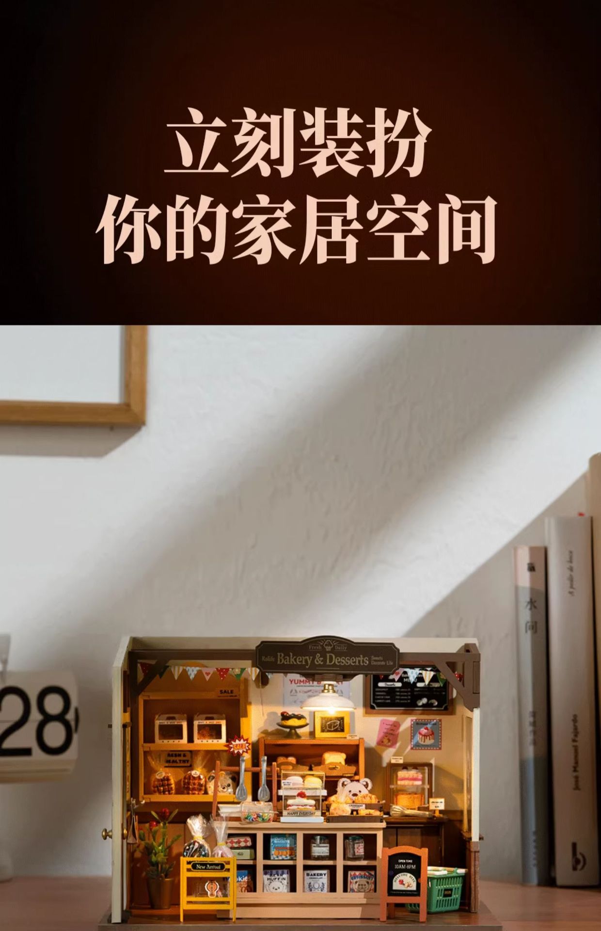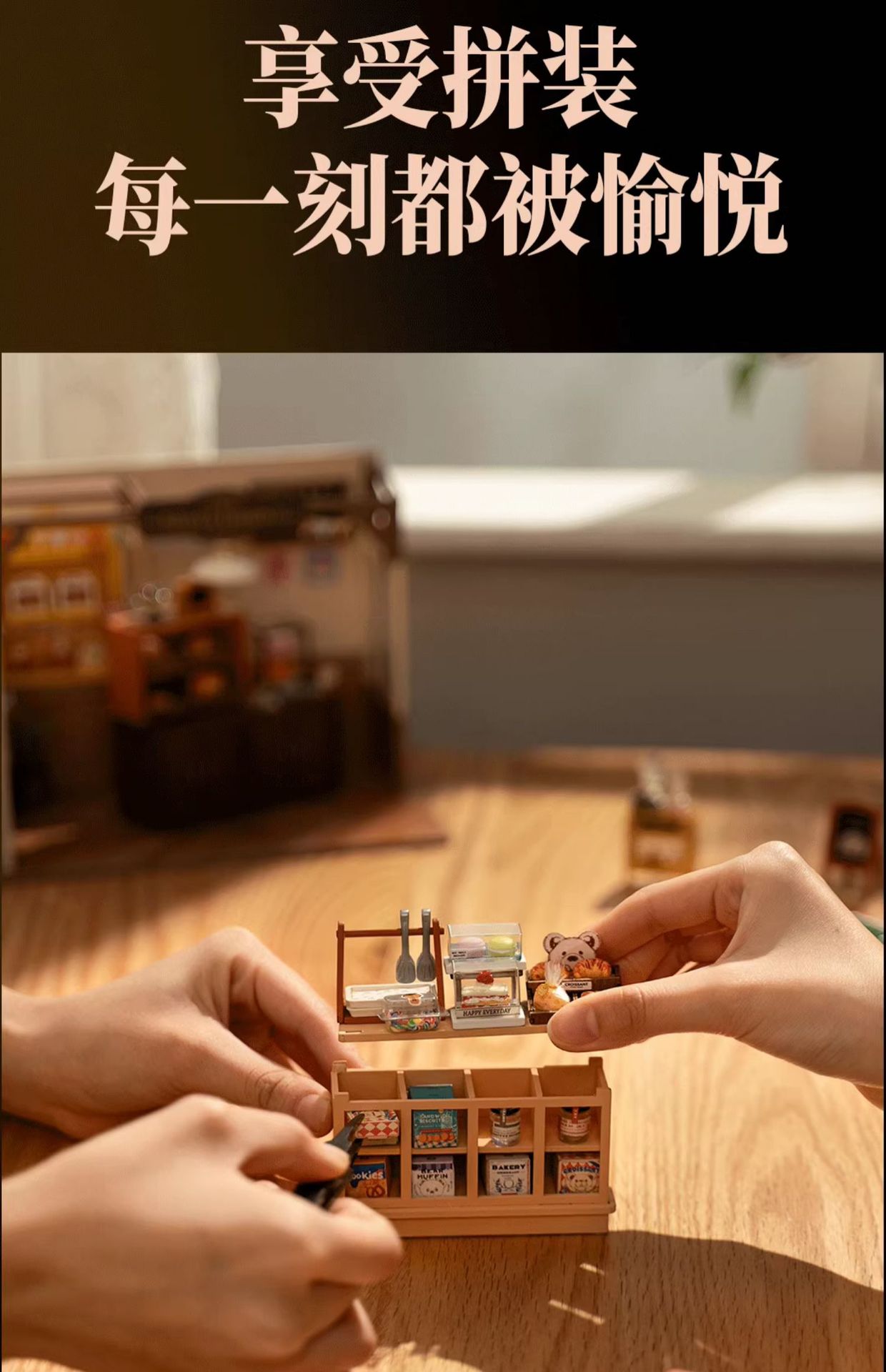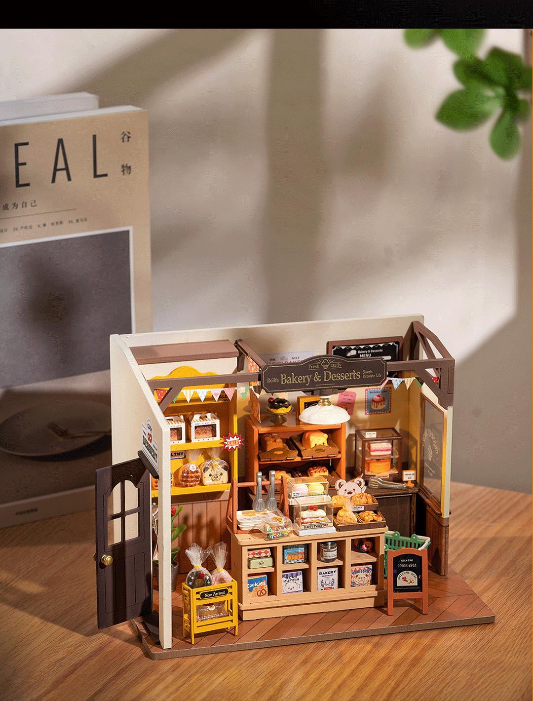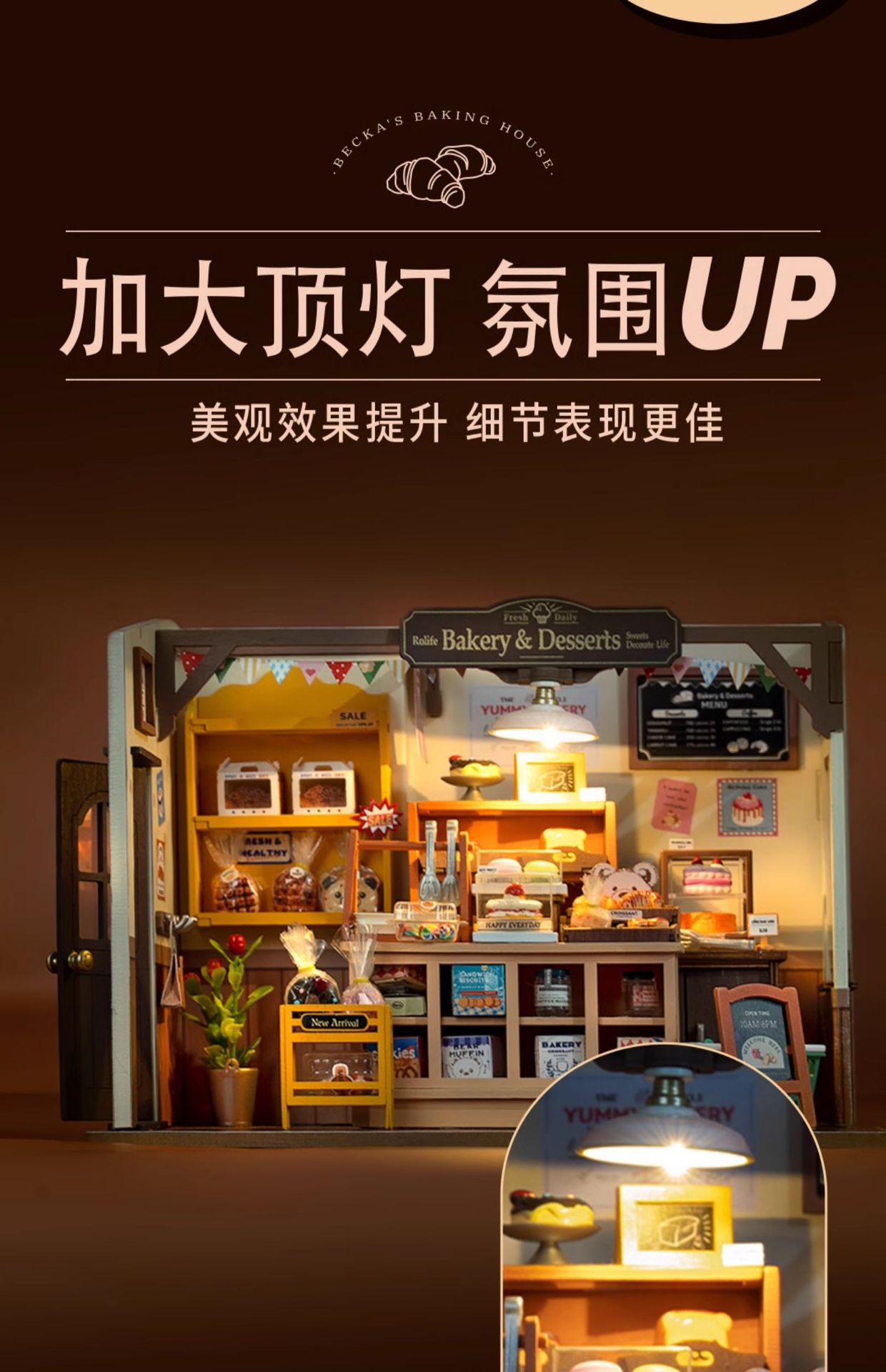 베카의 베이커리 DIY 오두막 작은 집 모델 미니 장면 빌딩 블록 여성스토어 가기