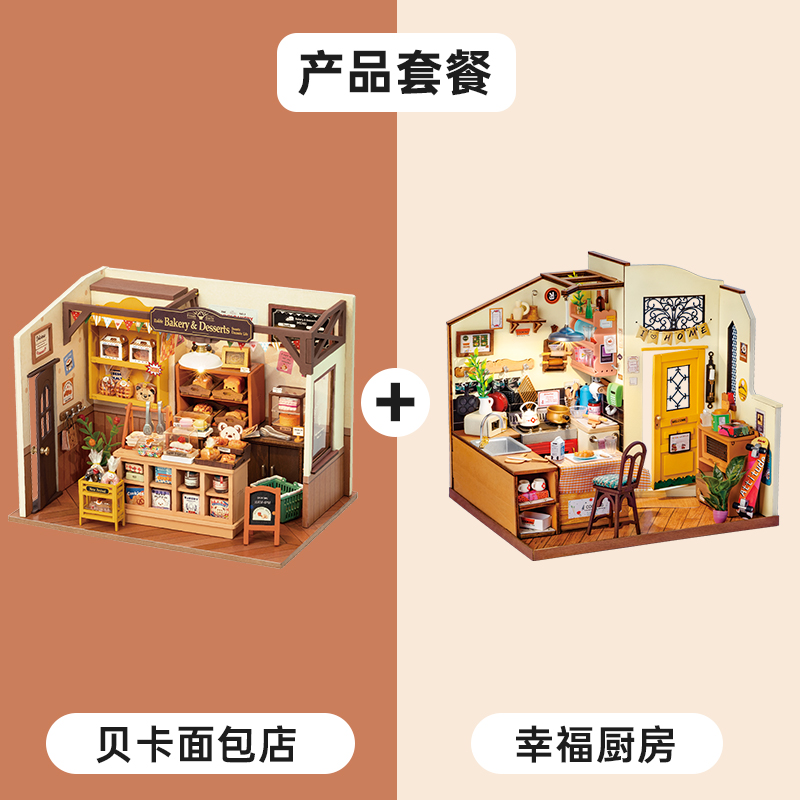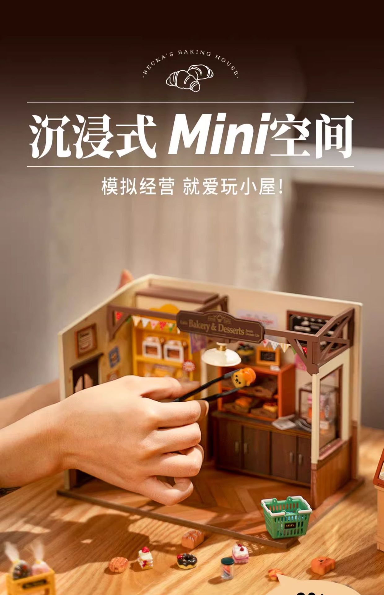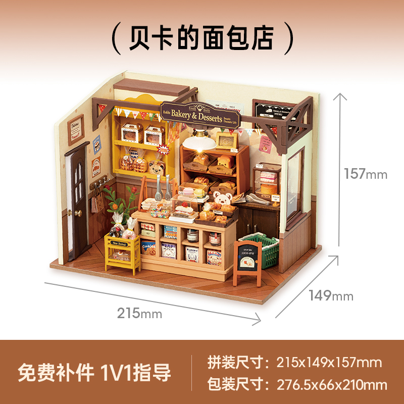 베카의 베이커리 DIY 오두막 작은 집 모델 미니 장면 빌딩 블록 여성