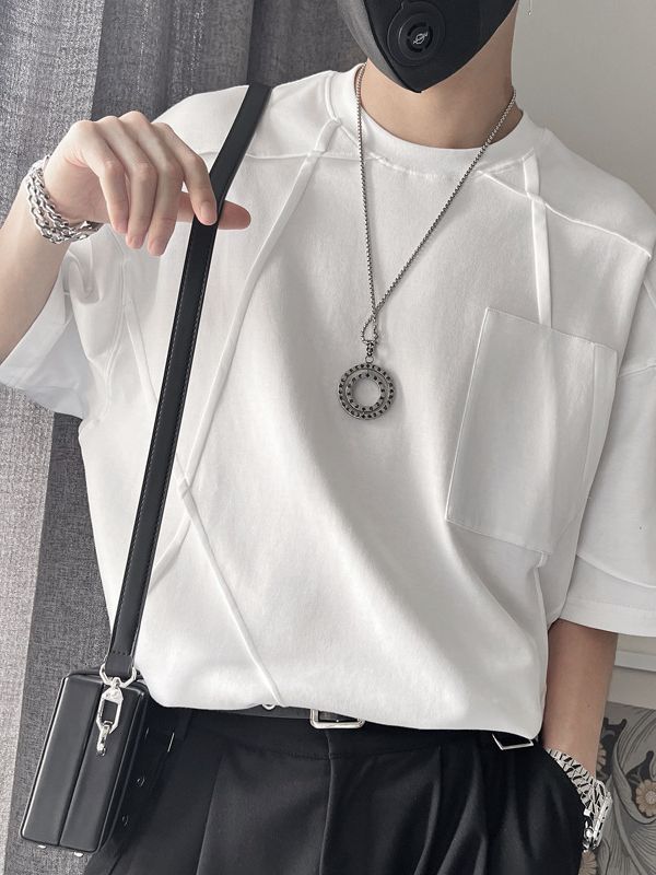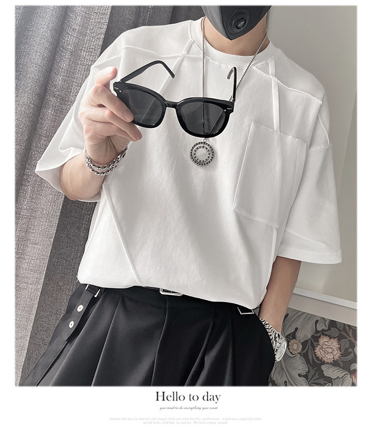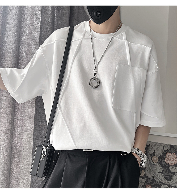 트렌디 한 브랜드 화이트 반팔 티셔츠 남성 여름 남성 프랑스 스타일 디자인 새로운 일본 스타일 느슨한 쿨 반소매 탑