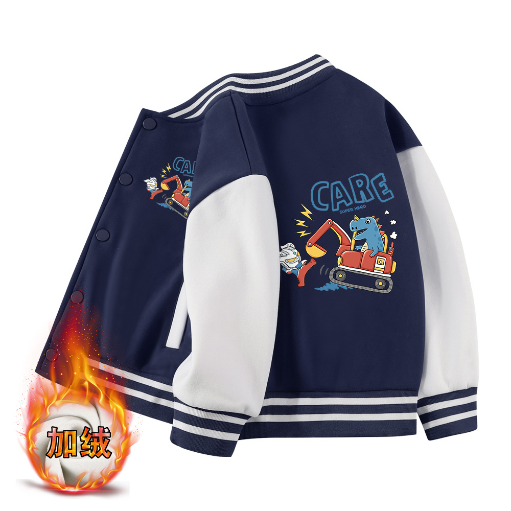 소년 캐주얼 코트 봄과 가을 새로운 어린이 가을 탑 어린이 가을과 겨울 기모 두꺼운 야구 세트스토어 가기