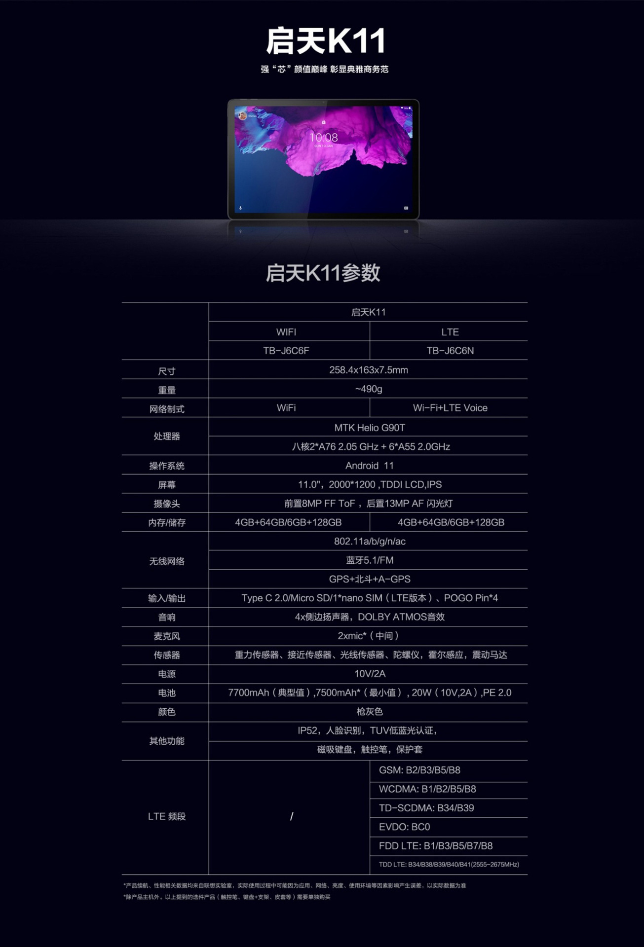 레노버 상업용 태블릿 키티 안 K11 11 "패드 6G 128G TB-J6C6F