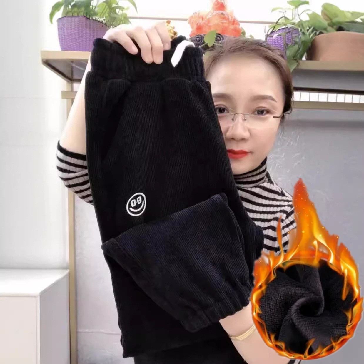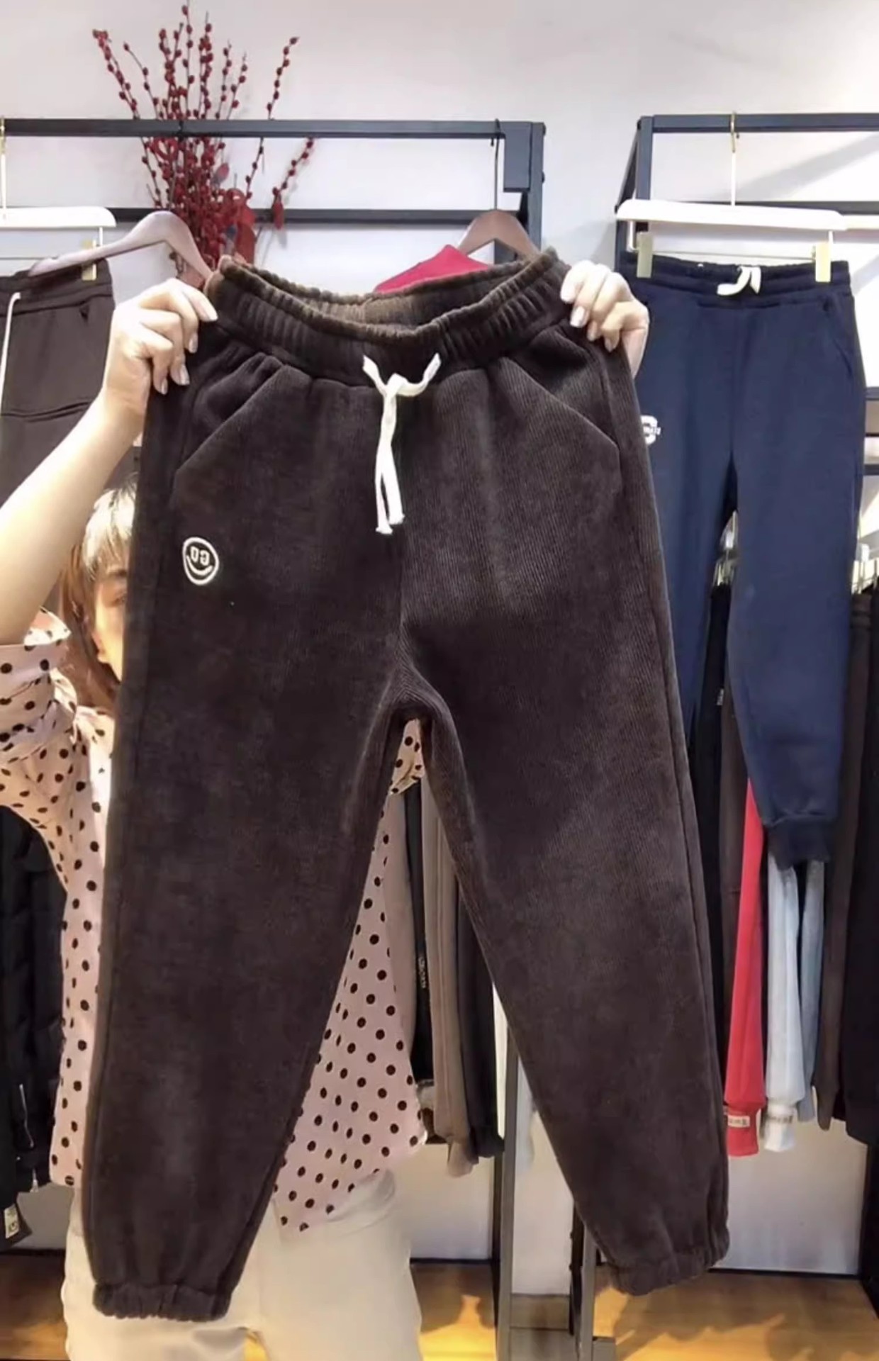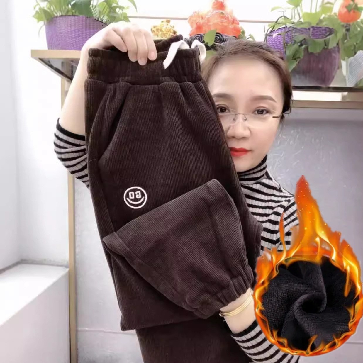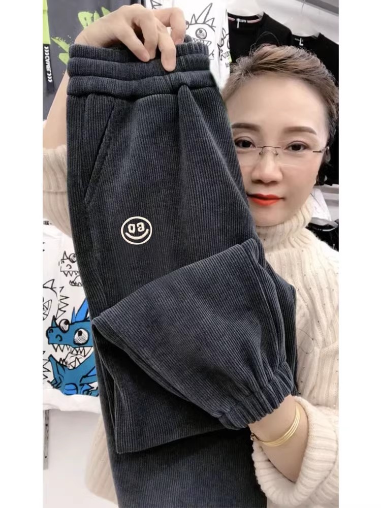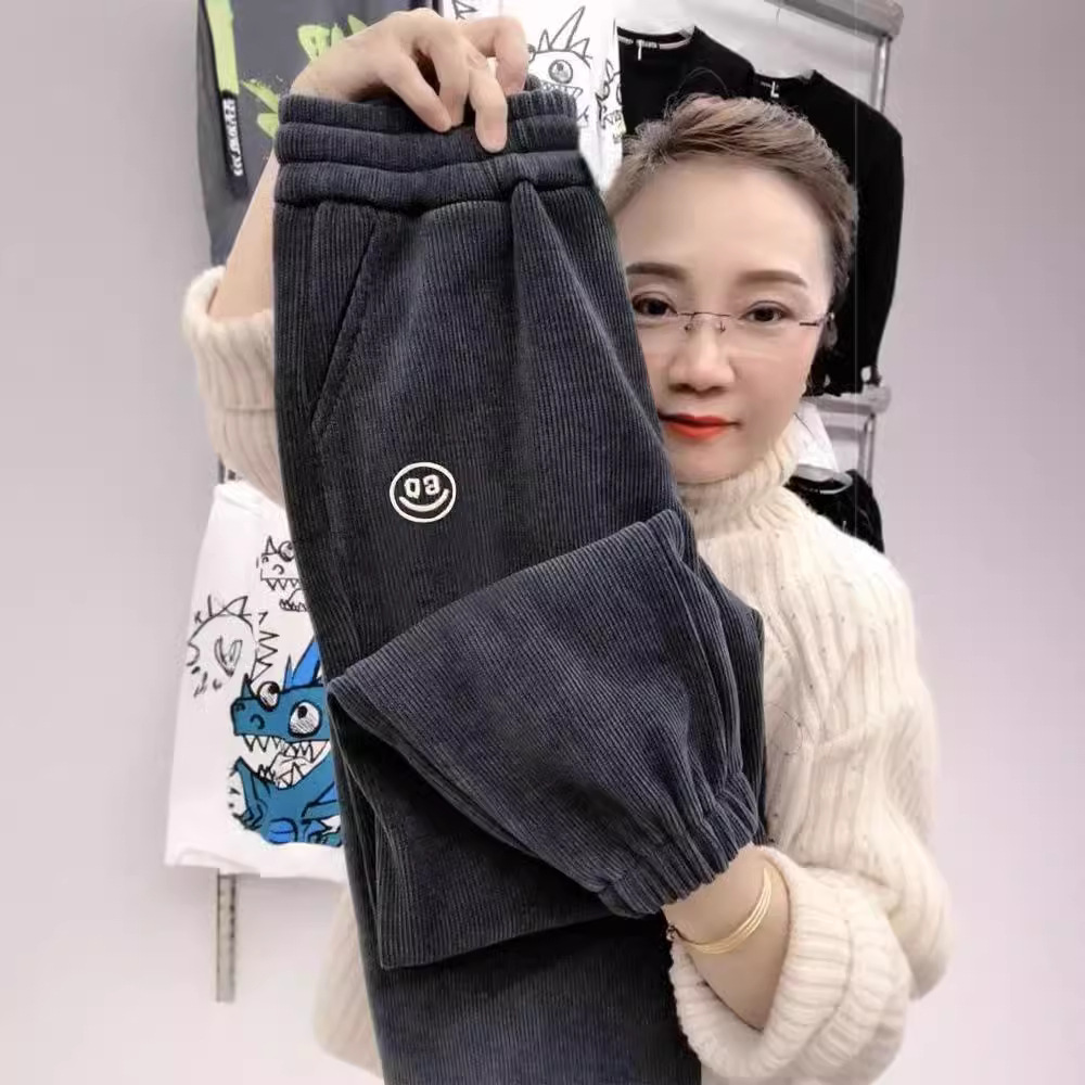 [기모/정사이즈] 가을과 겨울 플러스 사이즈 스포츠 바지 여자 느슨한 다리 캐주얼 바지 슬리밍 할란 웨이 바지스토어 가기