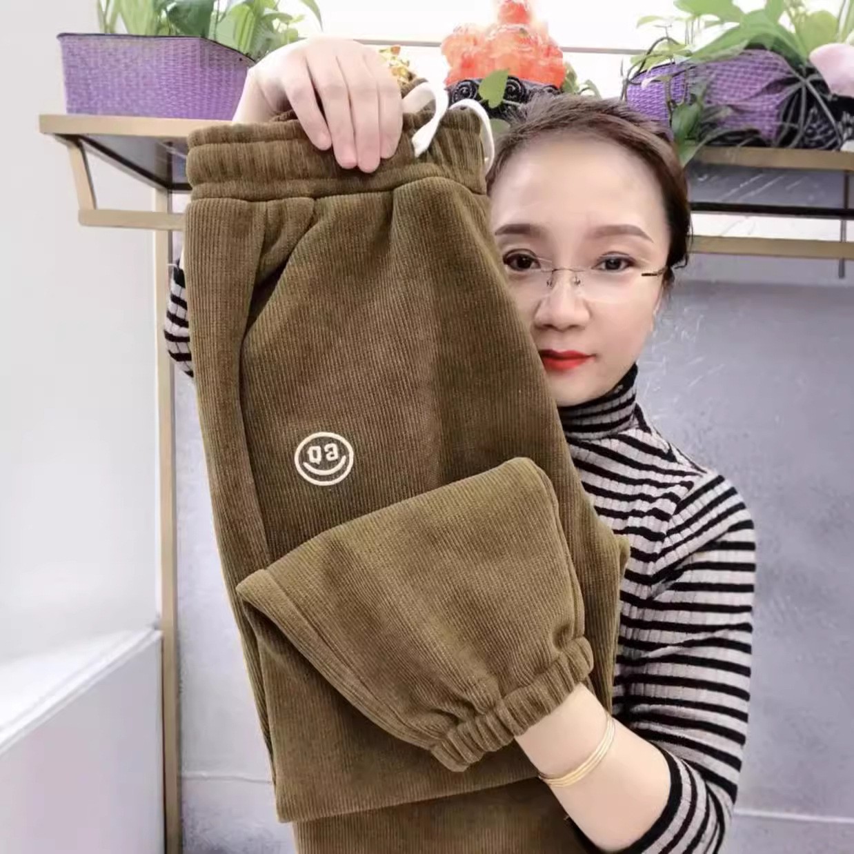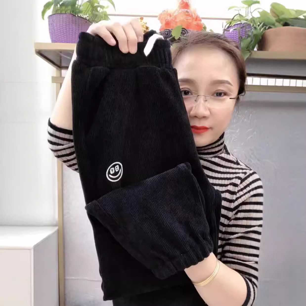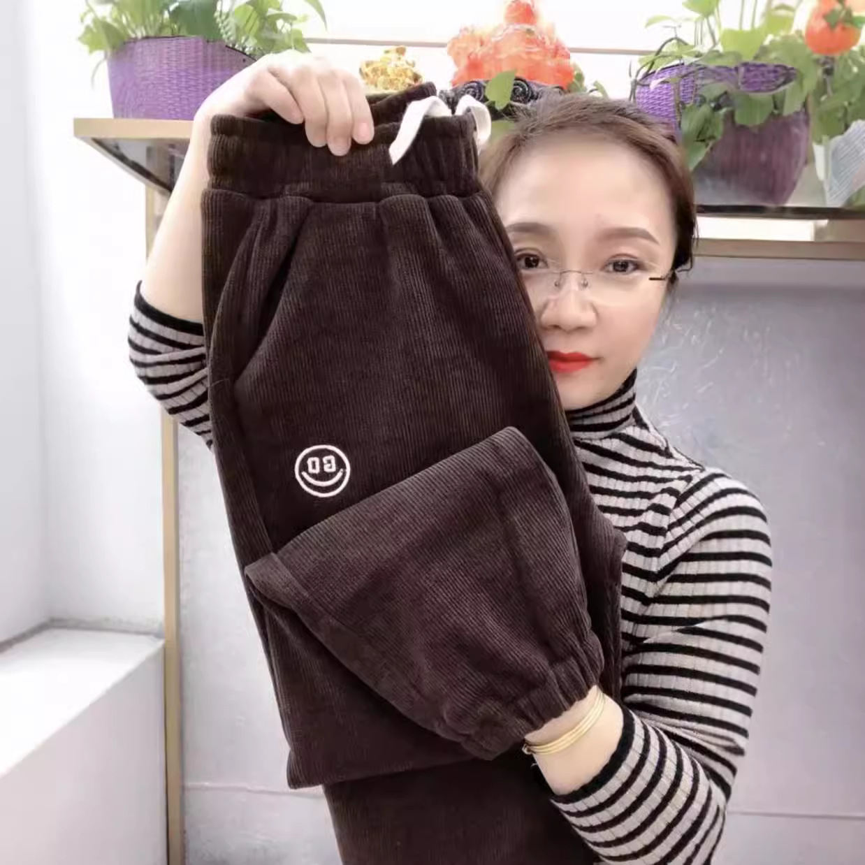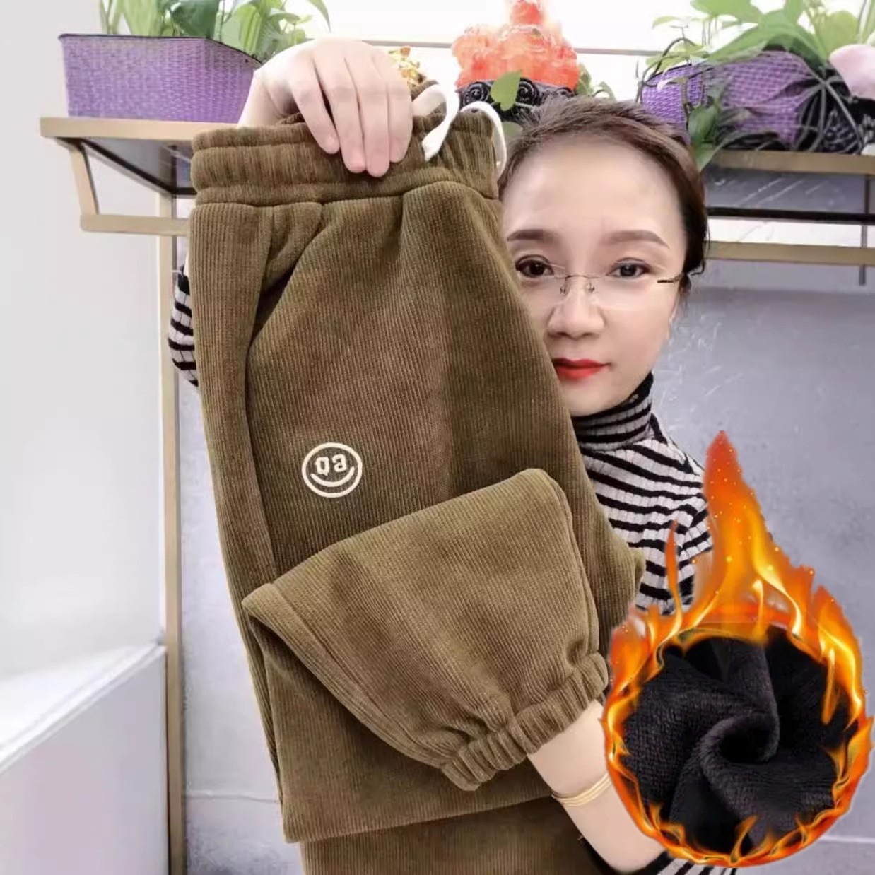 [기모/정사이즈] 가을과 겨울 플러스 사이즈 스포츠 바지 여자 느슨한 다리 캐주얼 바지 슬리밍 할란 웨이 바지스토어 가기