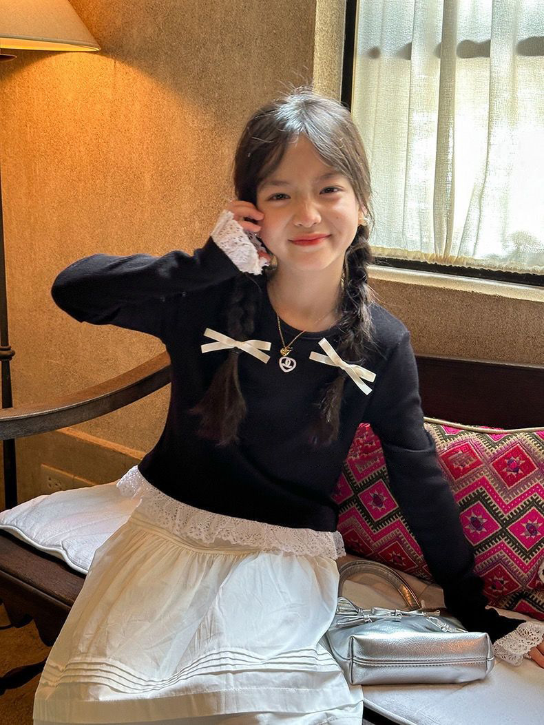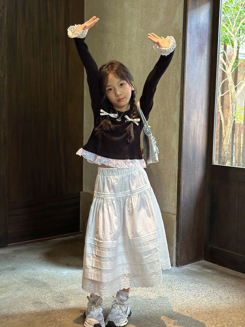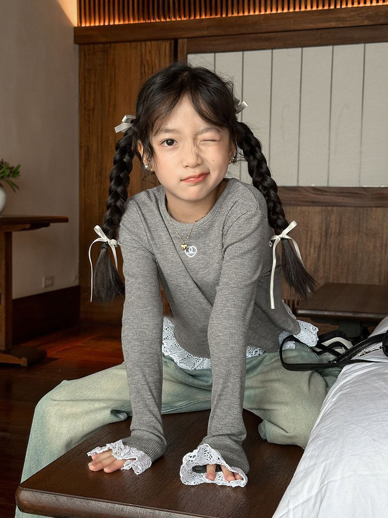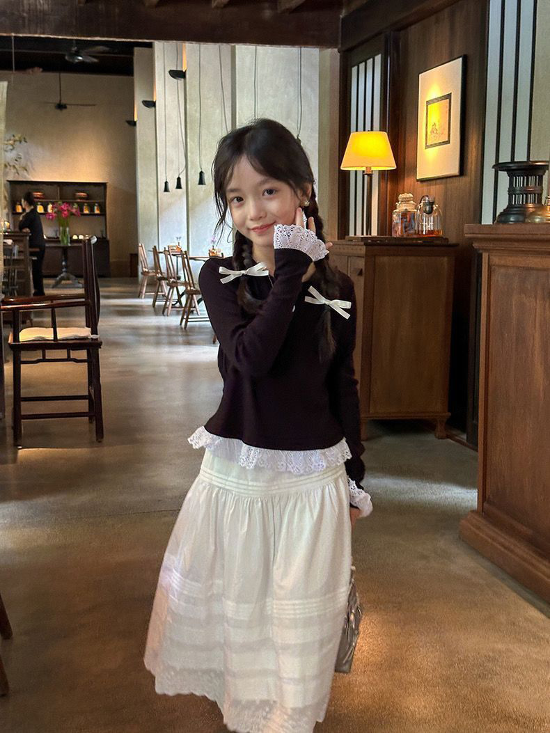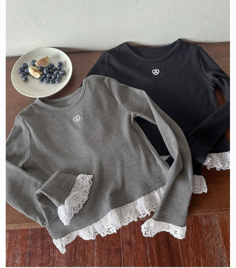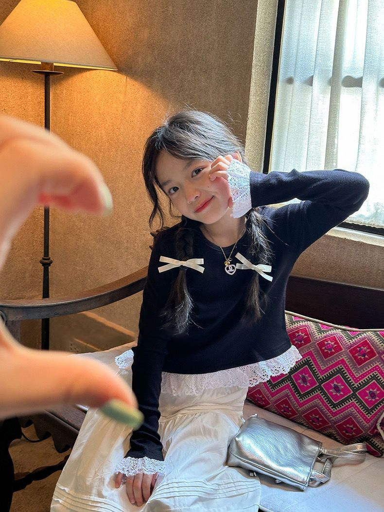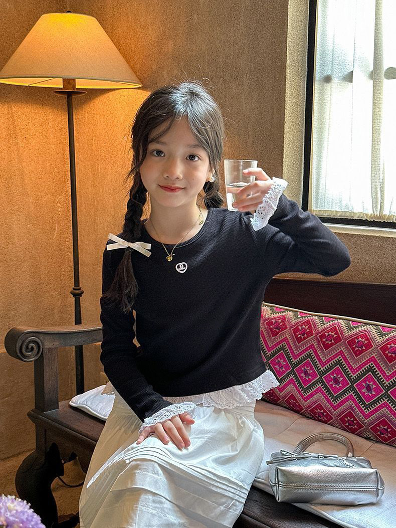 여자 티셔츠 2024 가을 새 레이스 바느질 슬림 핏 긴 소매베이스 셔츠 아기 소녀 탑 아동복스토어 가기