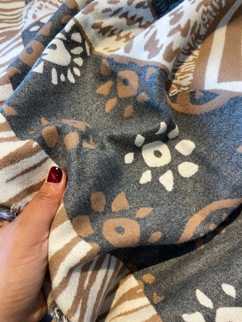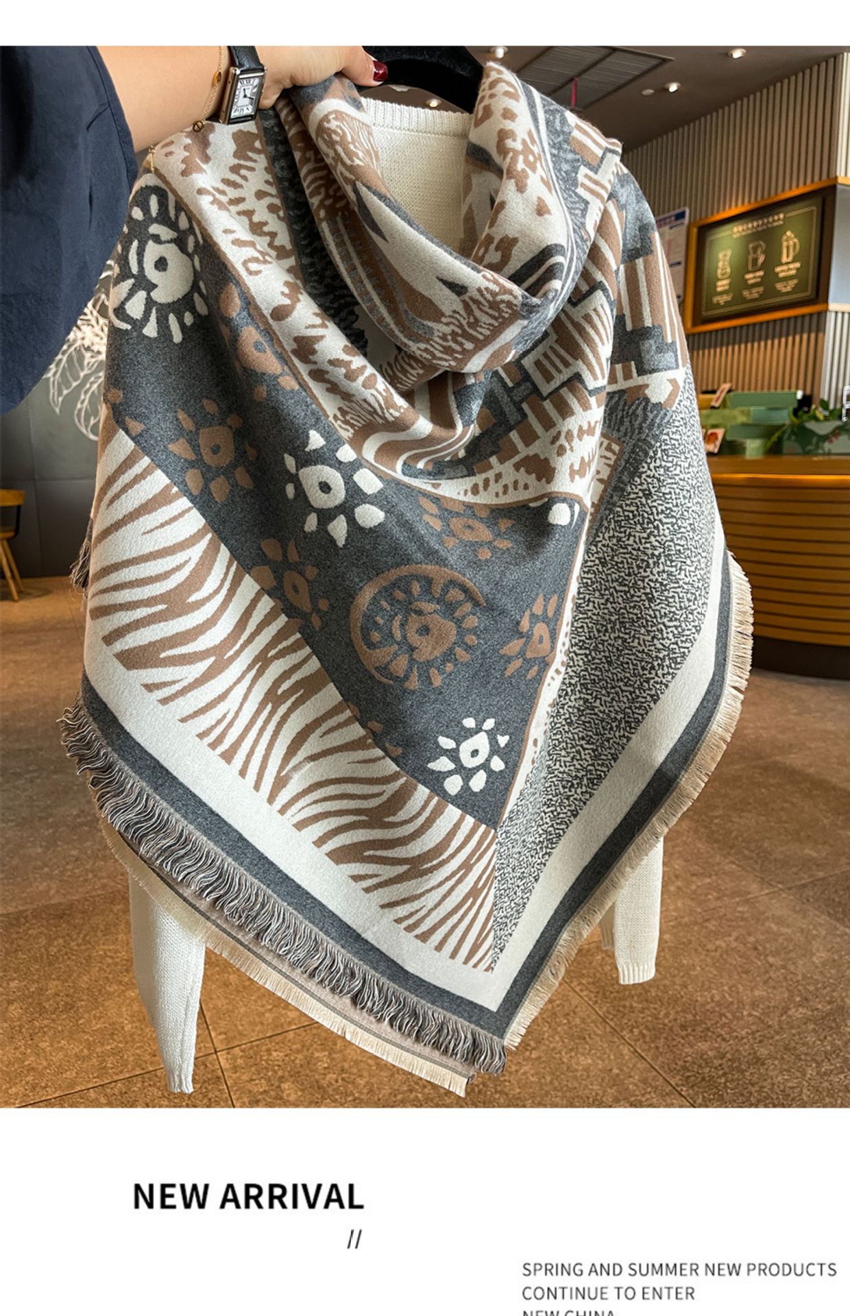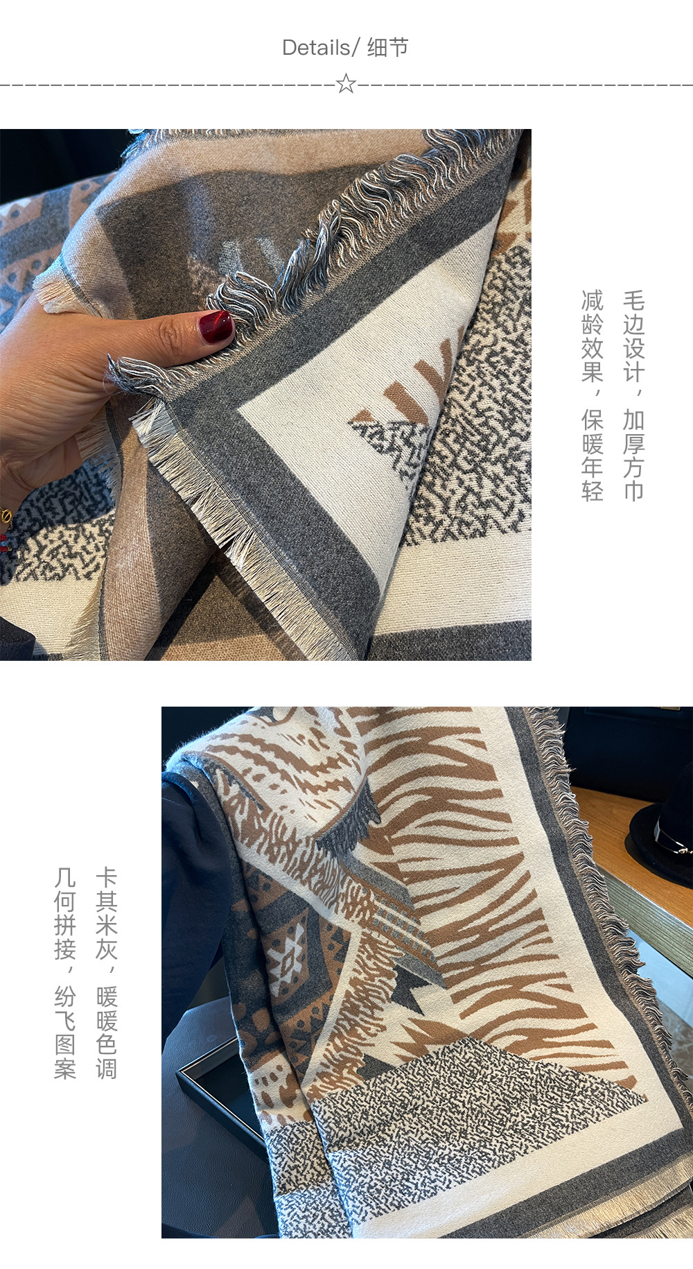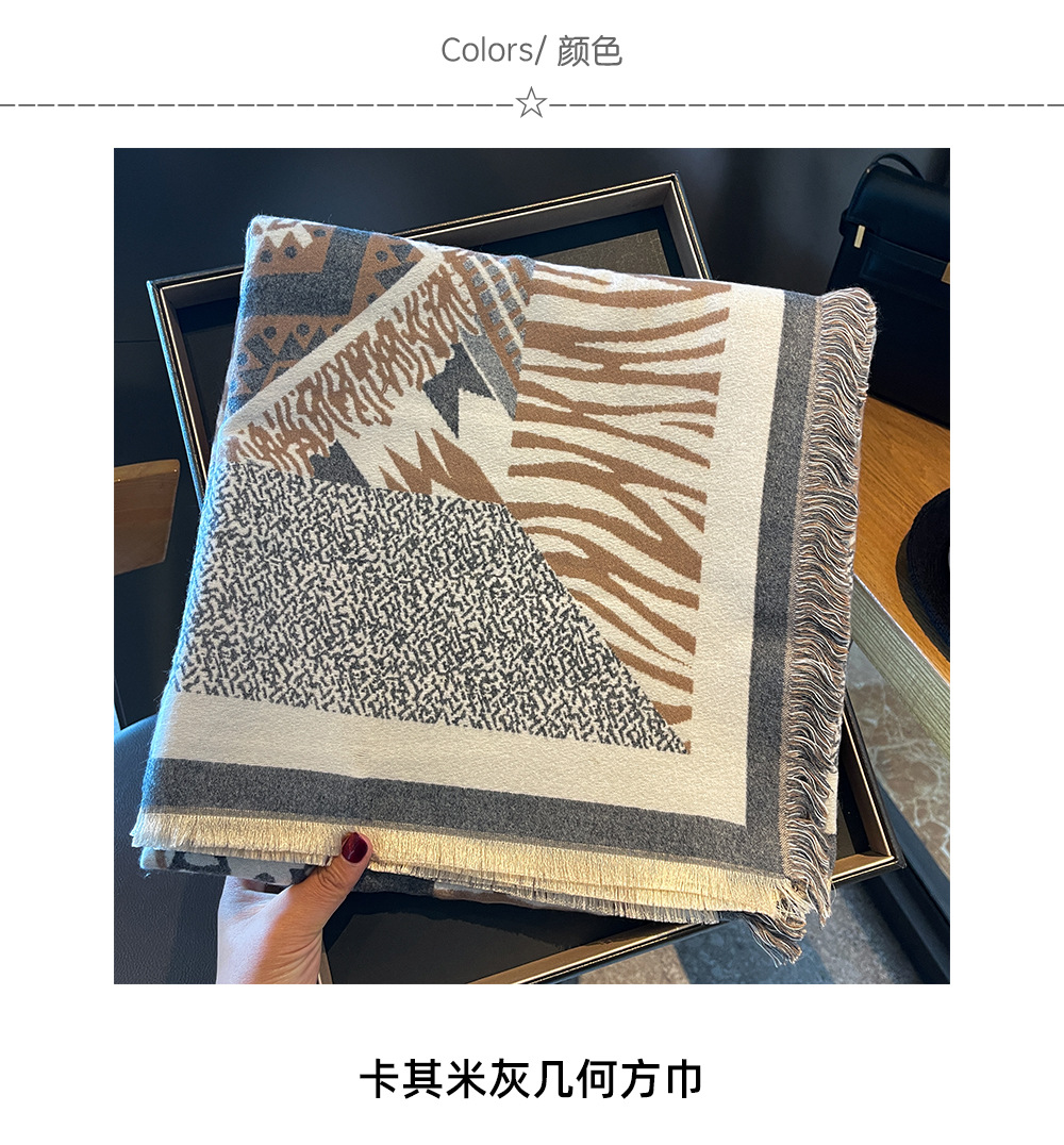 • 카키 그레이 기하학 스퀘어 스카프 [고중량 버전]