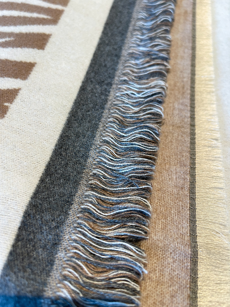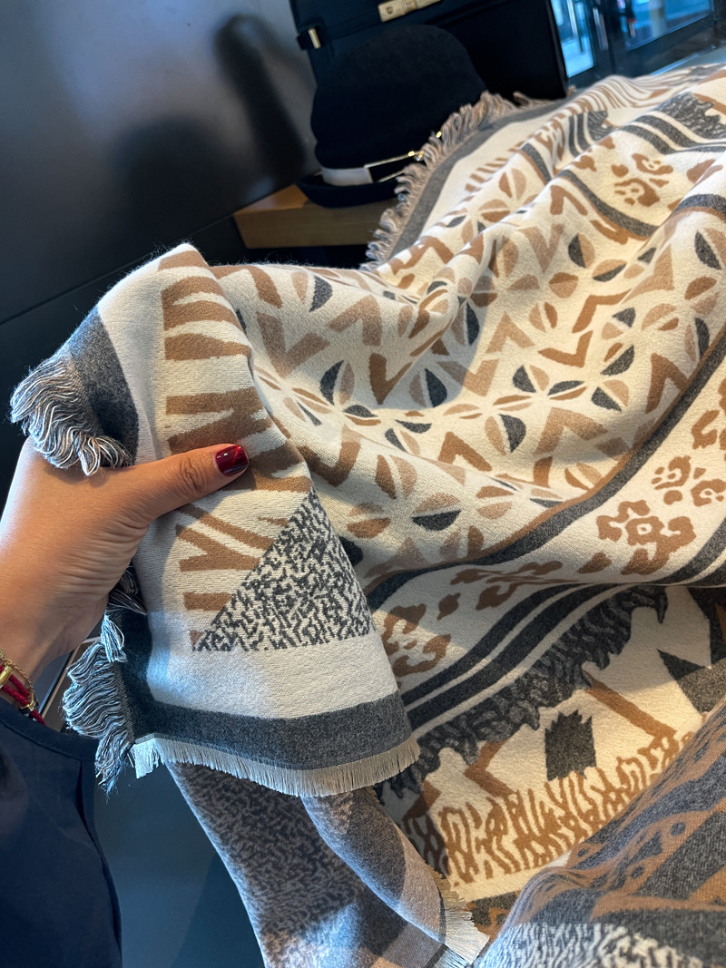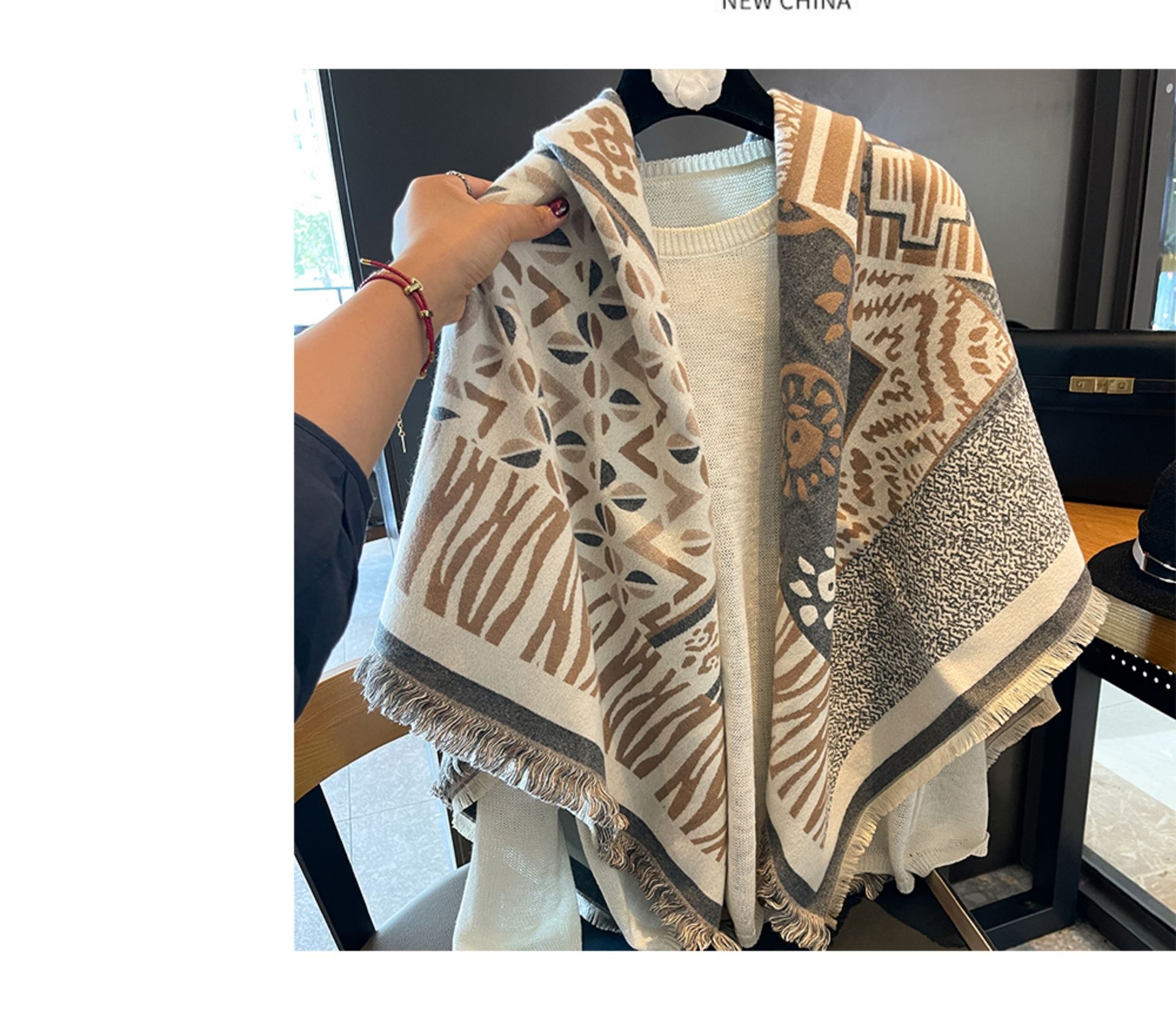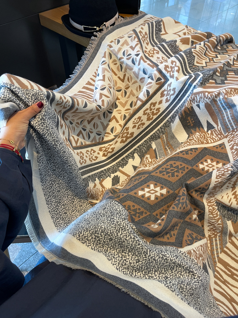 • 카키 그레이 기하학 스퀘어 스카프 [고중량 버전]