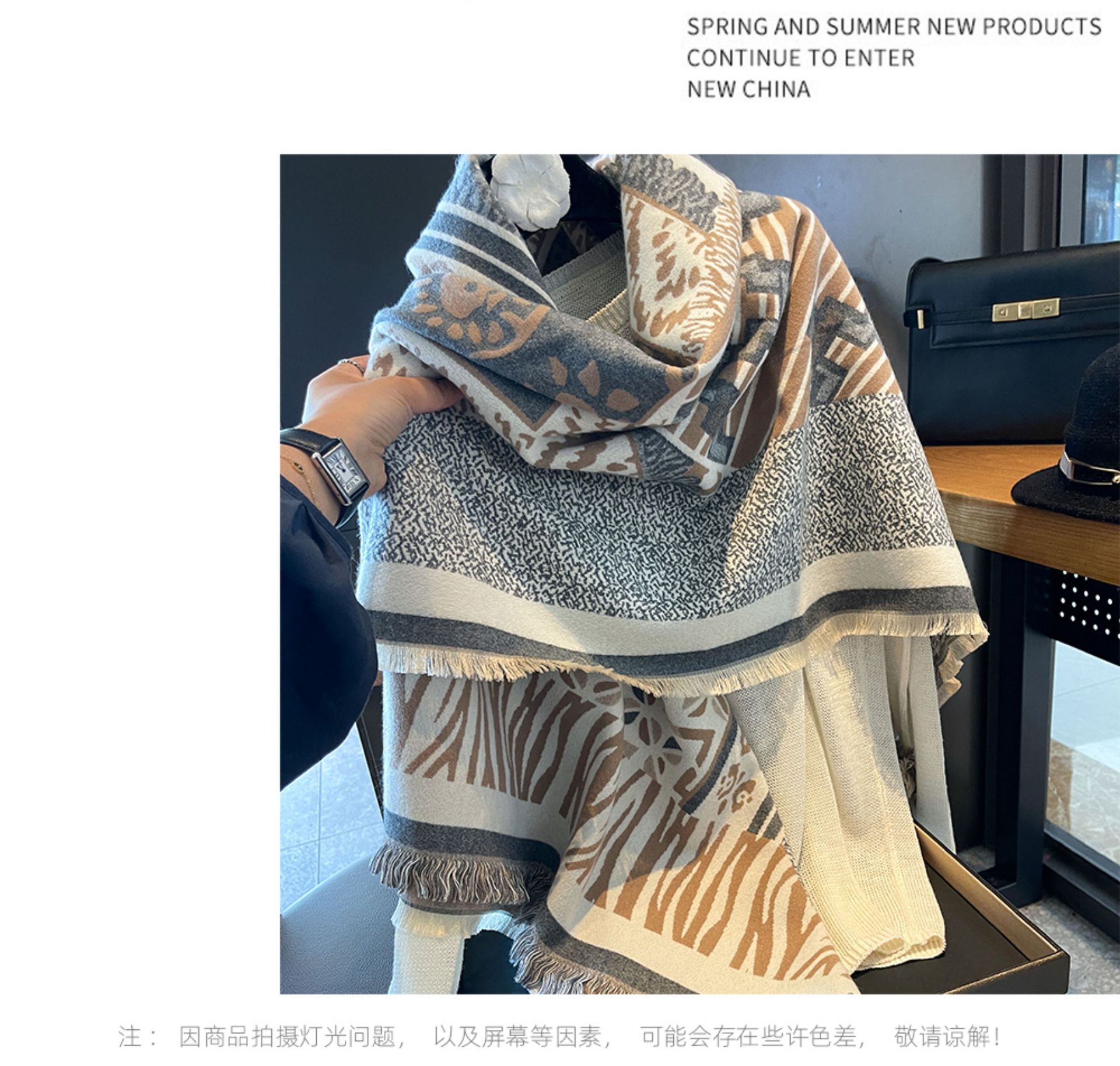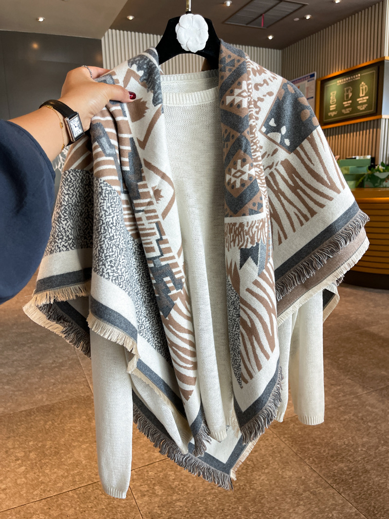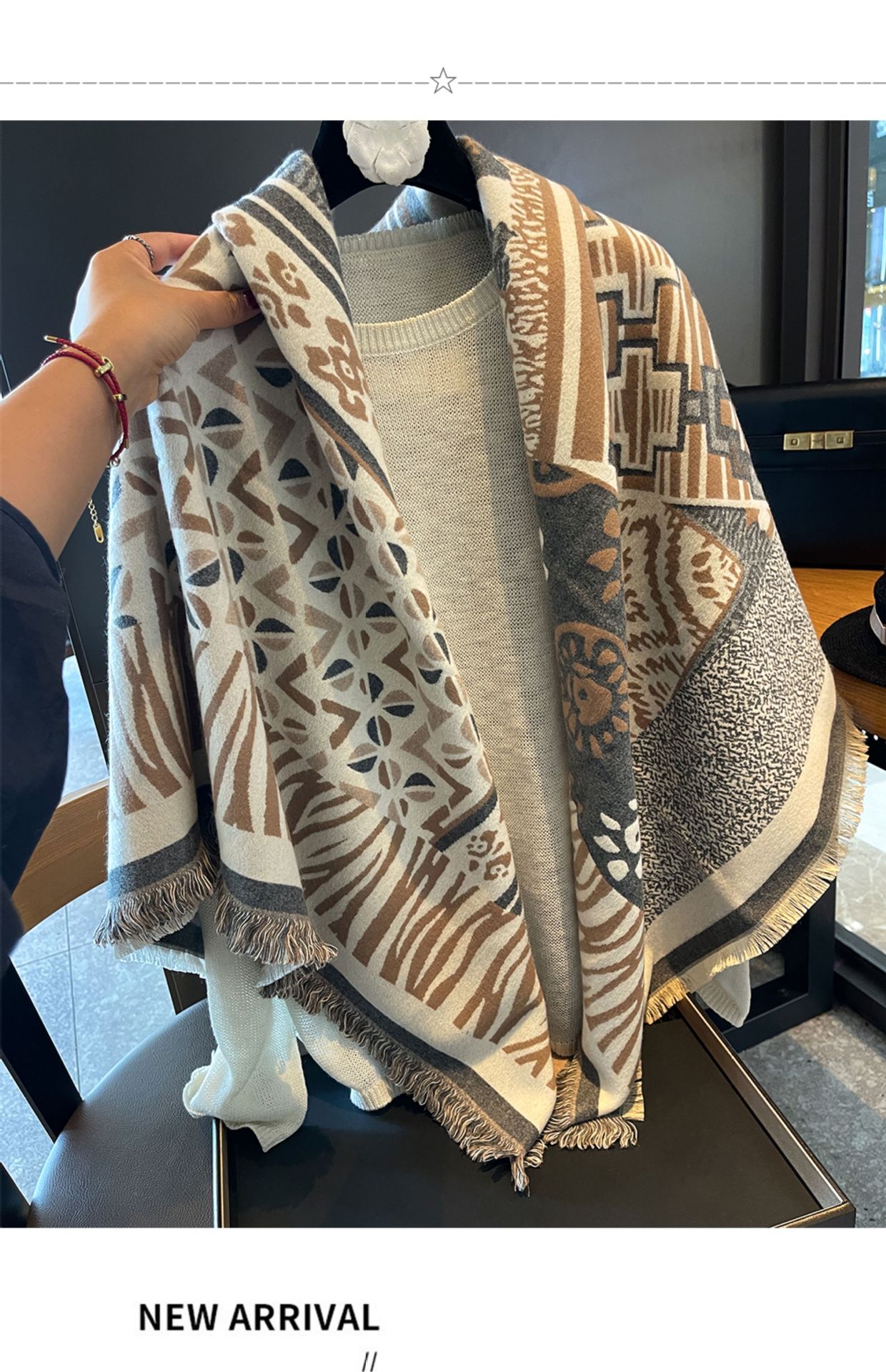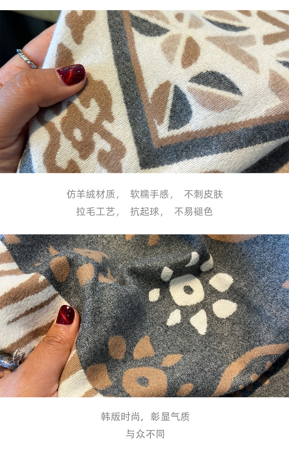 秋冬短须毛边大方巾披肩女双面加厚仿羊绒防寒保暖围巾三角巾两用