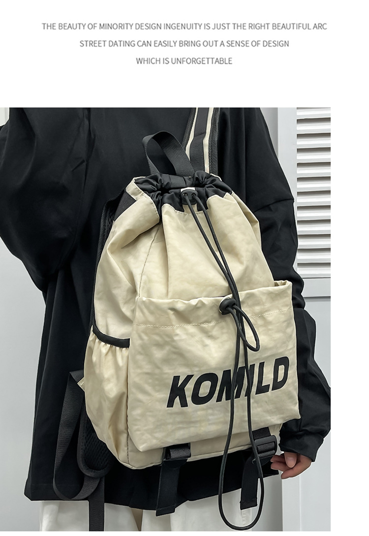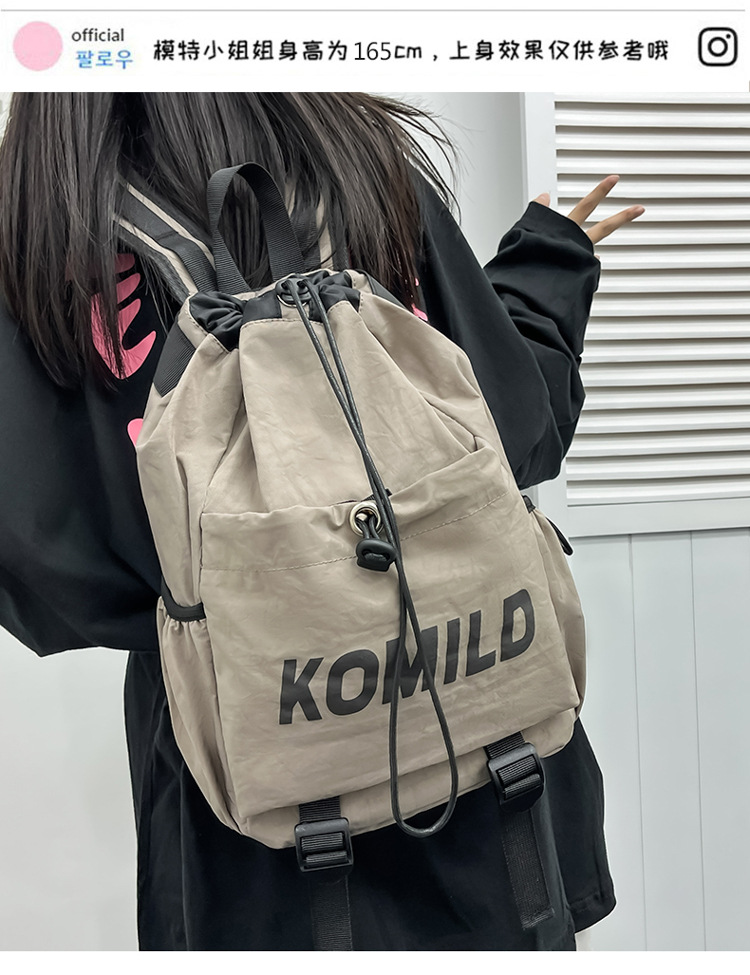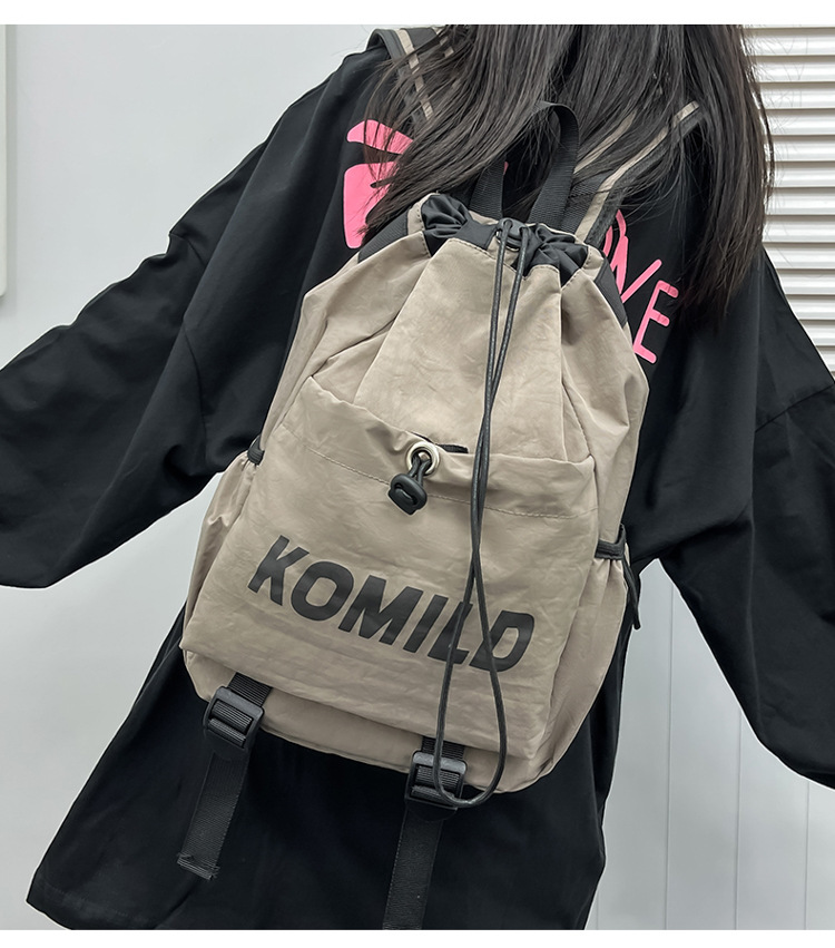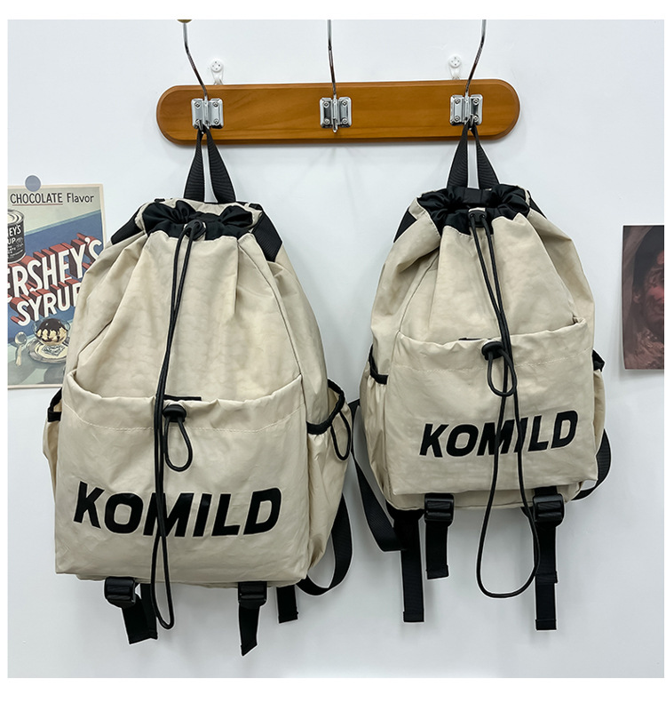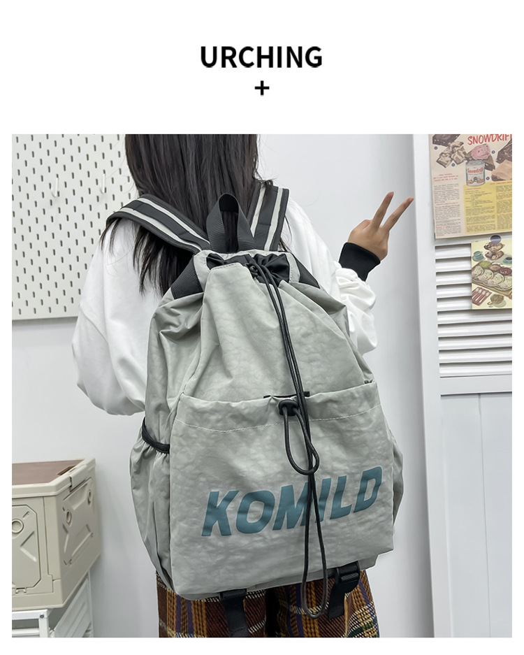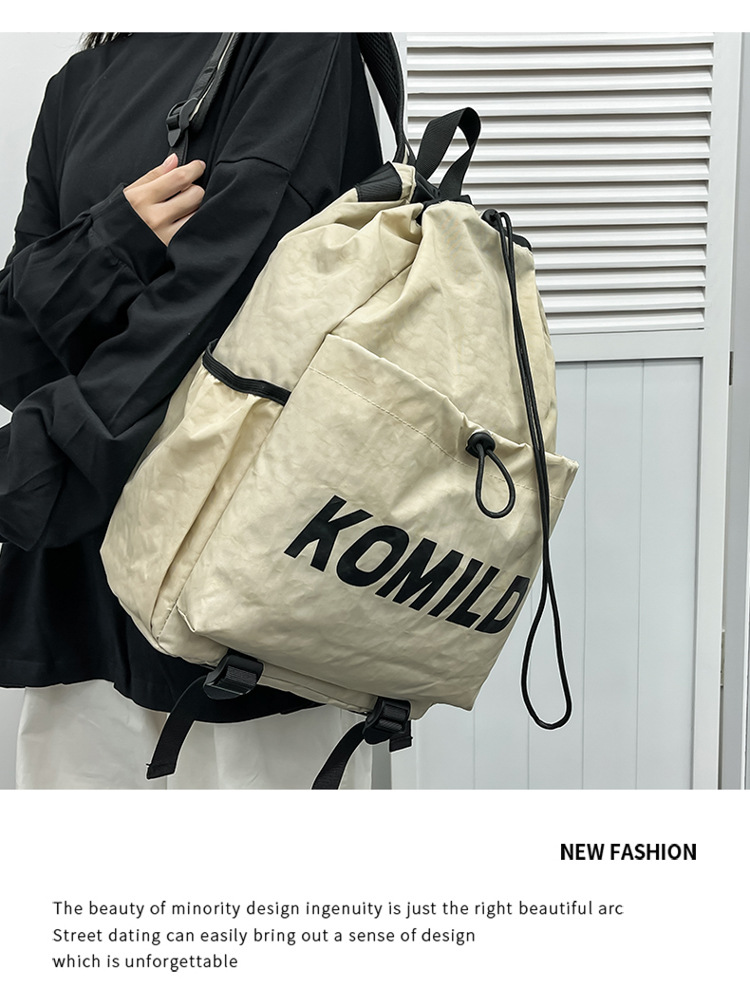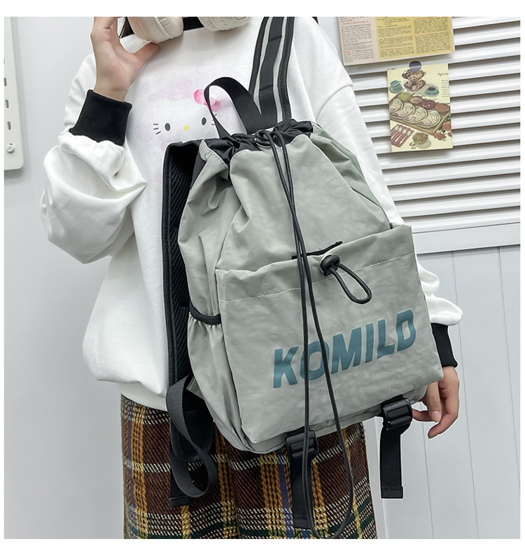 배낭 질감 트렌드 국경 2024 새로운 대용량 패션 간단한 drawstring 학교 가방 레저 배낭스토어 가기
