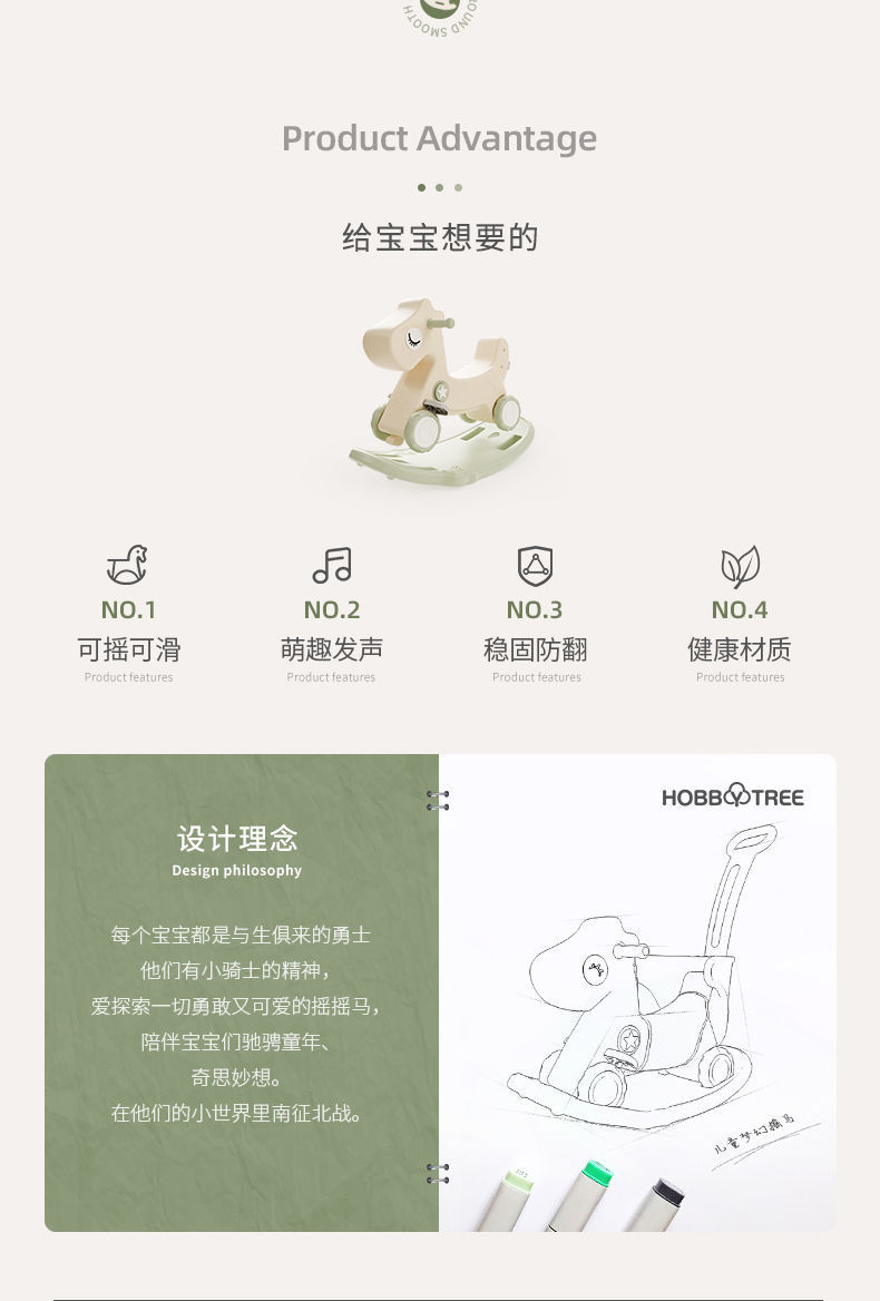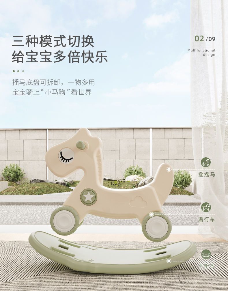 호비 나무 흔들 말 아기 아이 흔들 말 트로이 목마 년 선물 투인원 듀얼 사용 스니크 카 플레이 Jiatai