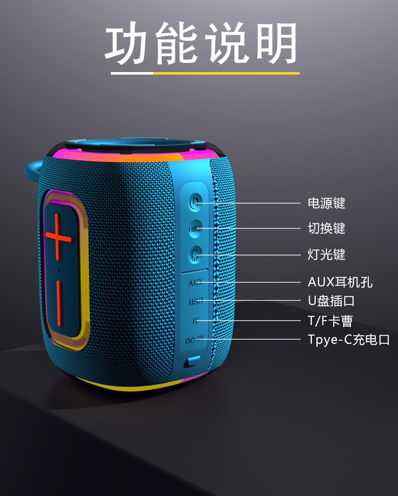 블루투스 스피커 무선 미니 야외 다채로운 빛 방수 서브 우퍼 작은 휴대용 대용량 자동차 오디오스토어 가기