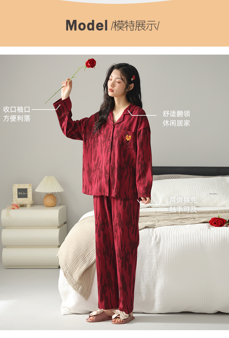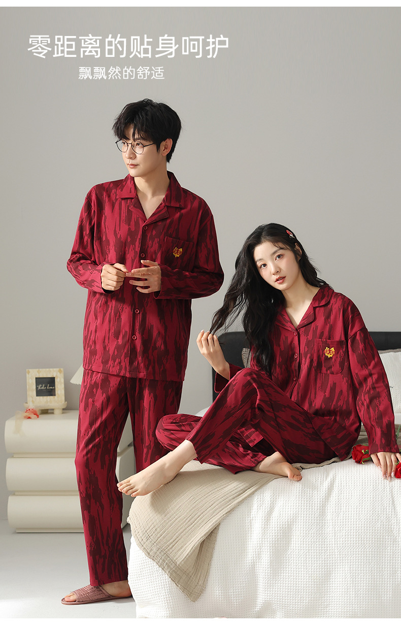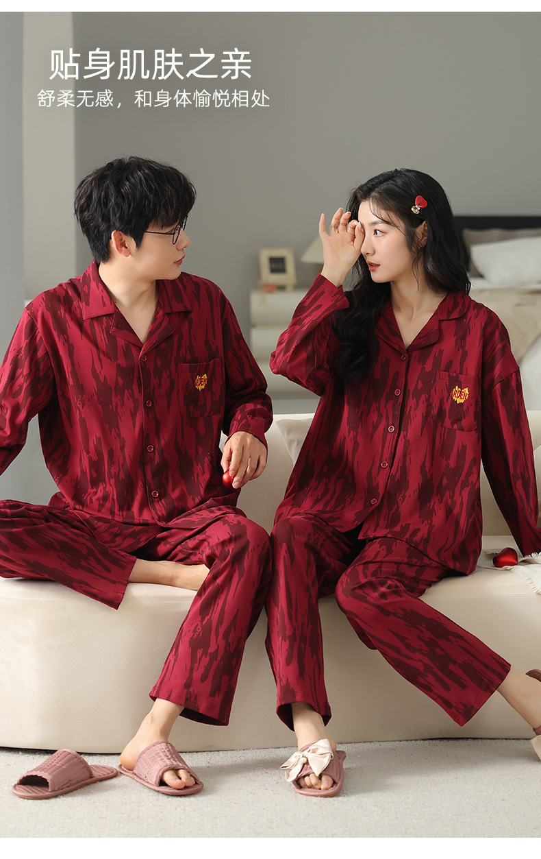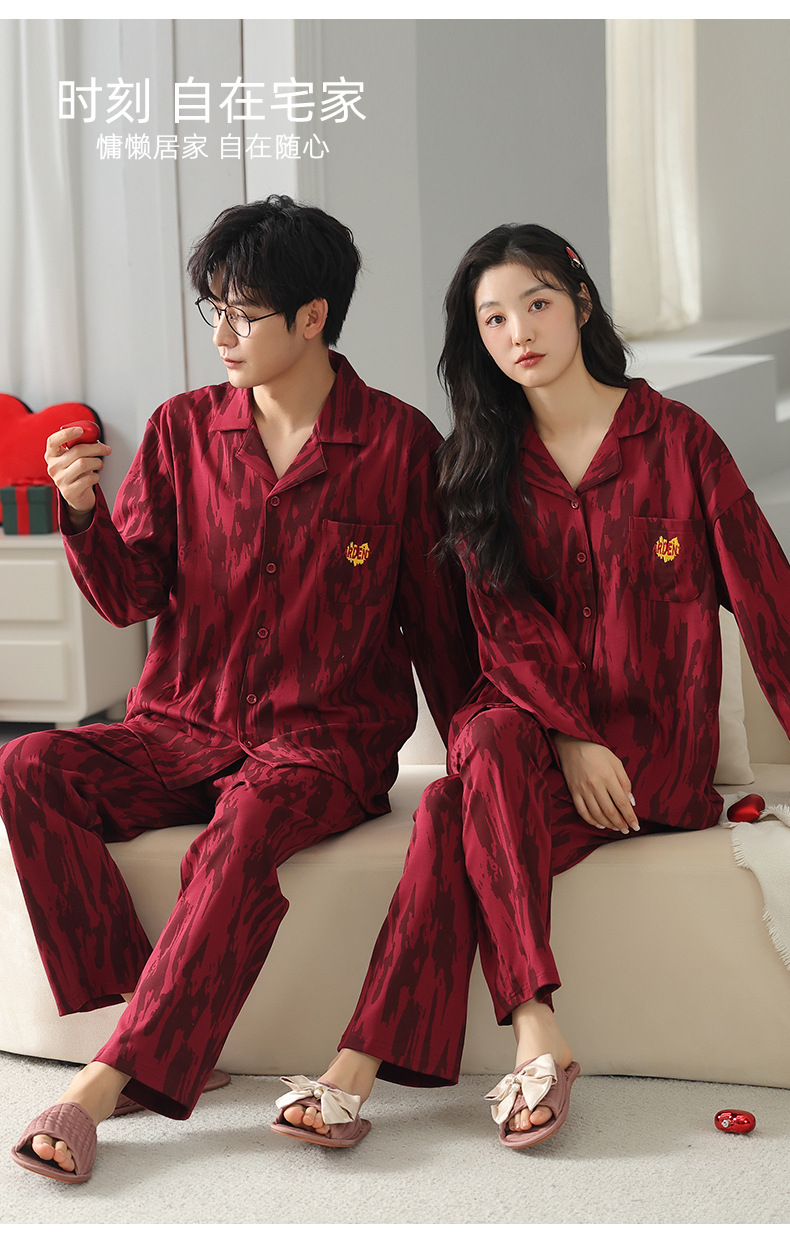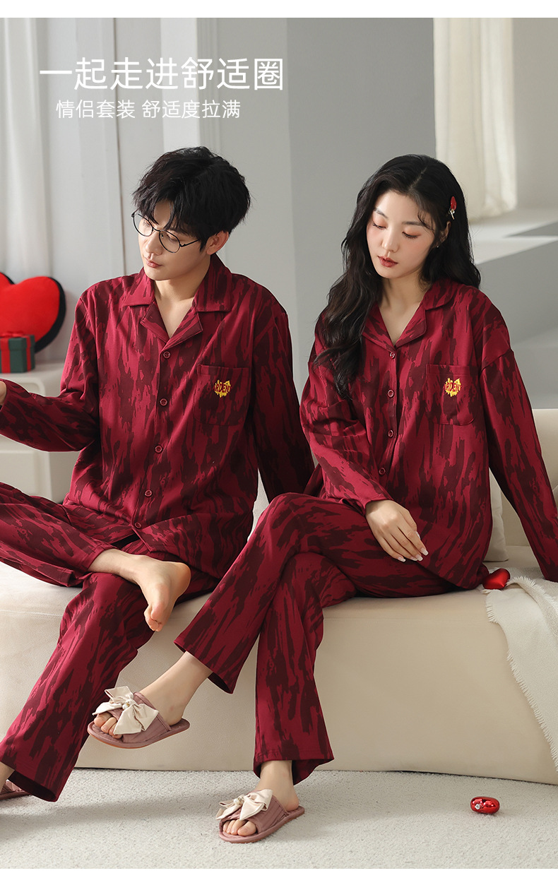 커플 잠옷 여성의 봄과 가을 붉은 잠옷 새로 결혼 한 남자 생활 년 붉은 축제 홈 의류 세트스토어 가기