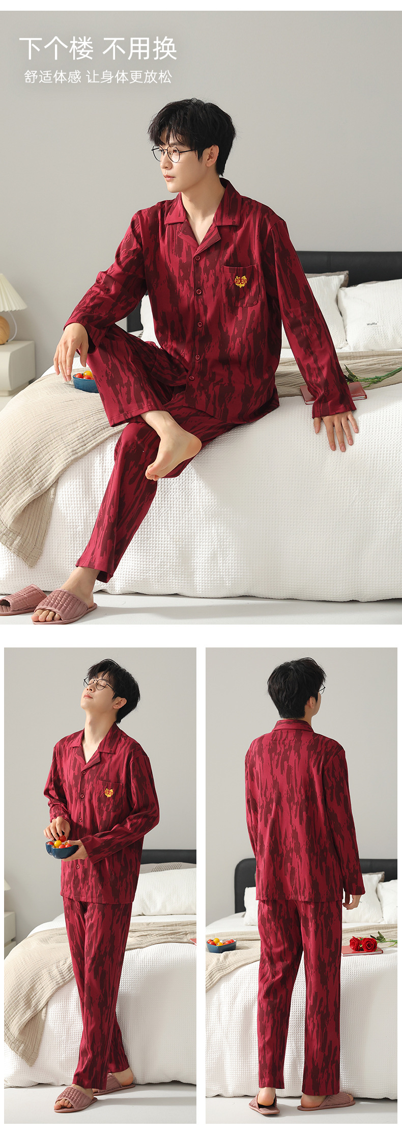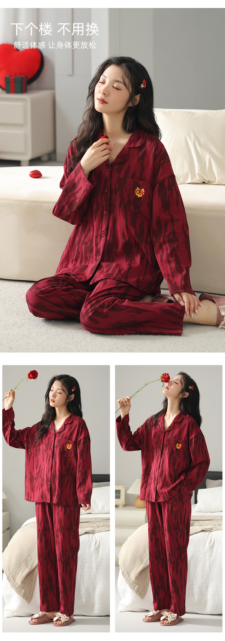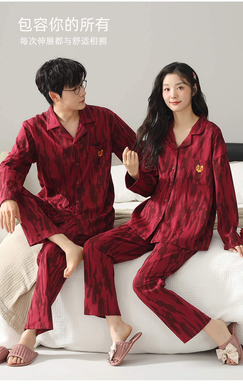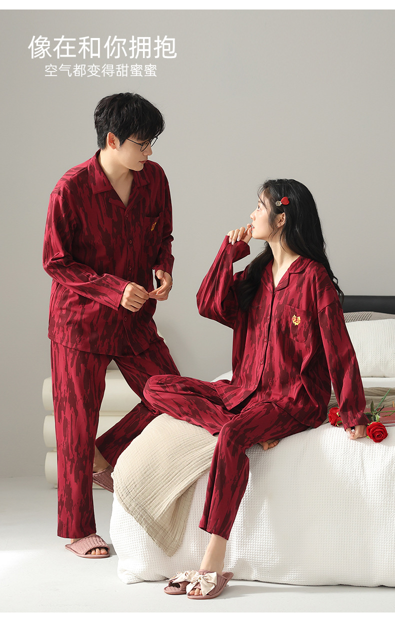 커플 잠옷 여성의 봄과 가을 붉은 잠옷 새로 결혼 한 남자 생활 년 붉은 축제 홈 의류 세트스토어 가기