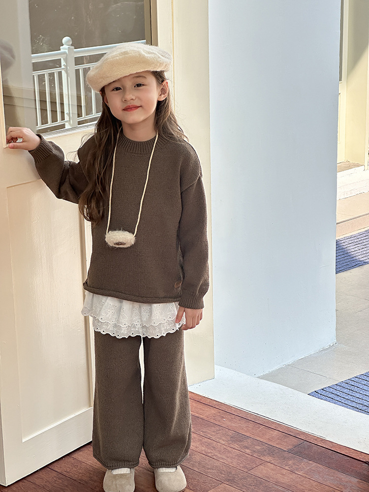 [클리어런스 스타일] 봄 가을 여아 따뜻하고 부드러운 카폭 니트 컬링 스웨터 + 스트레이트 팬츠 투피스 슈트스토어 가기