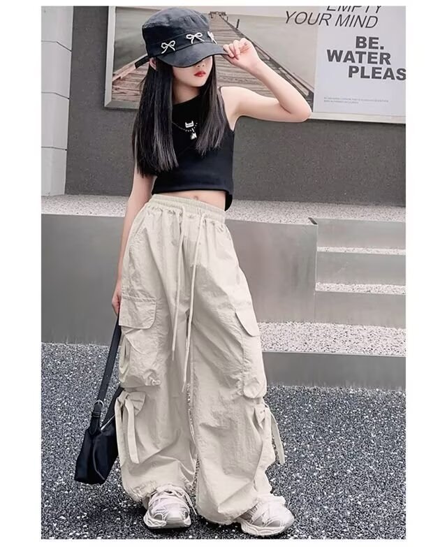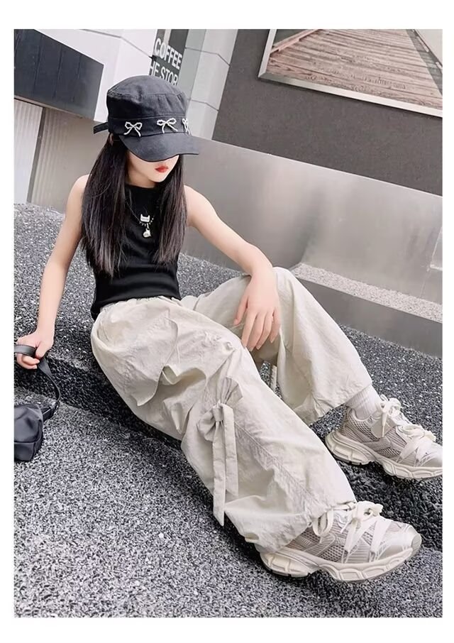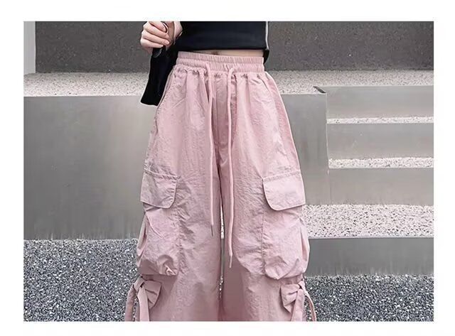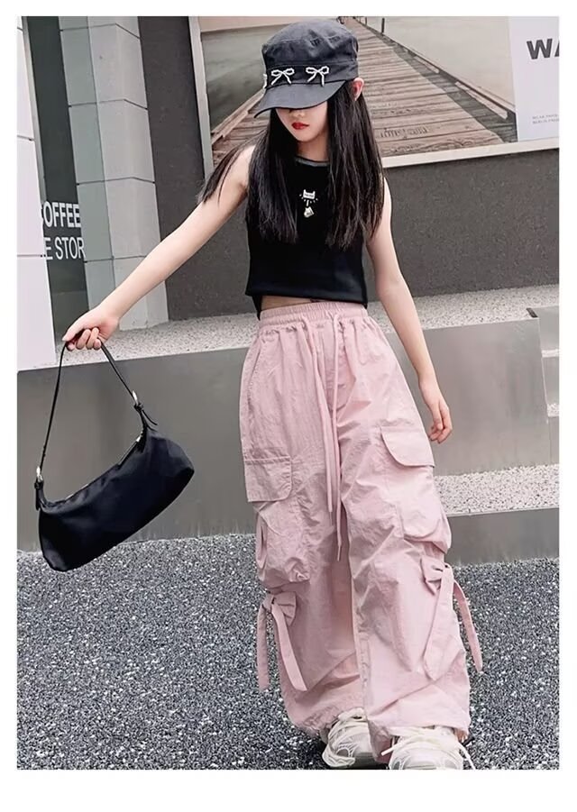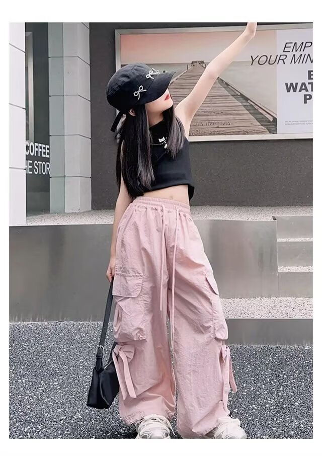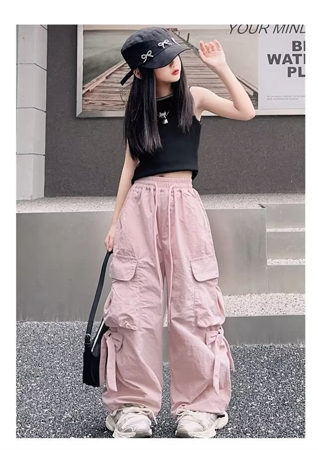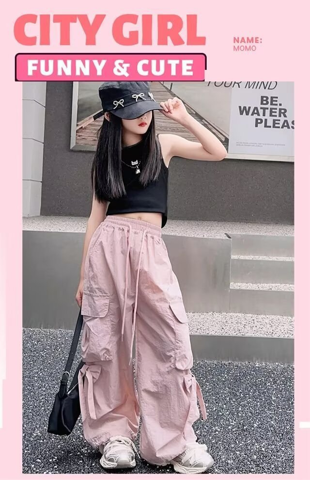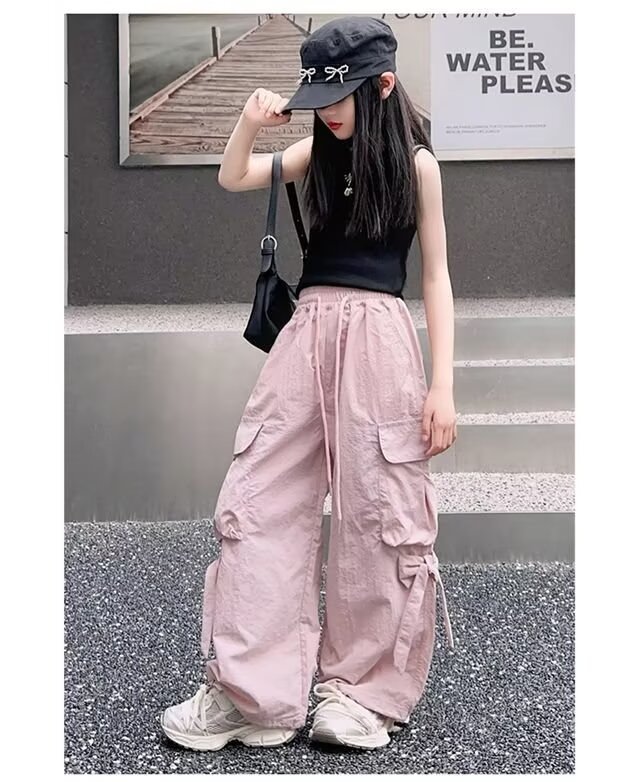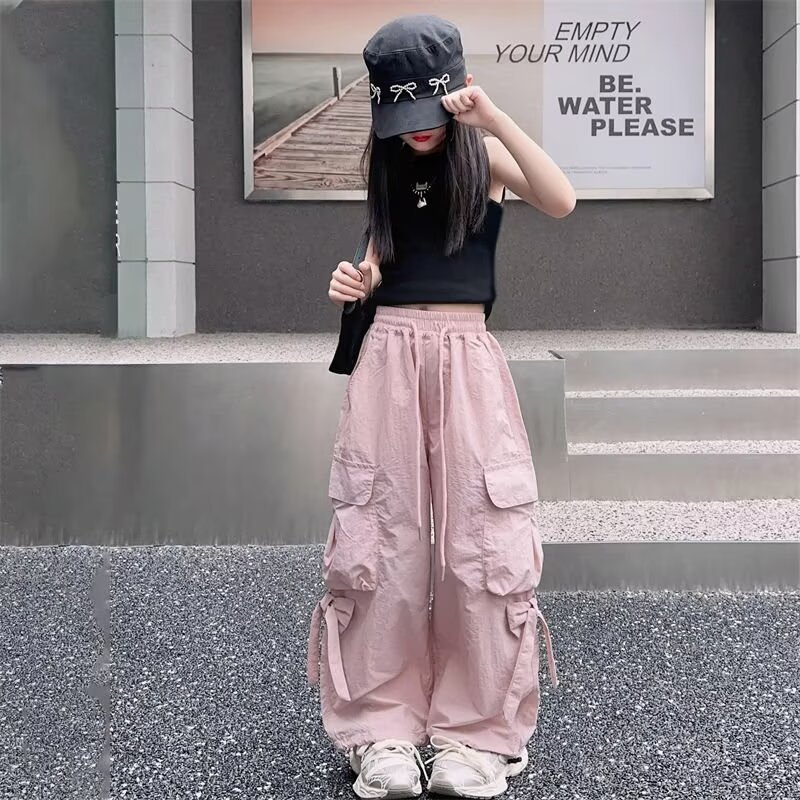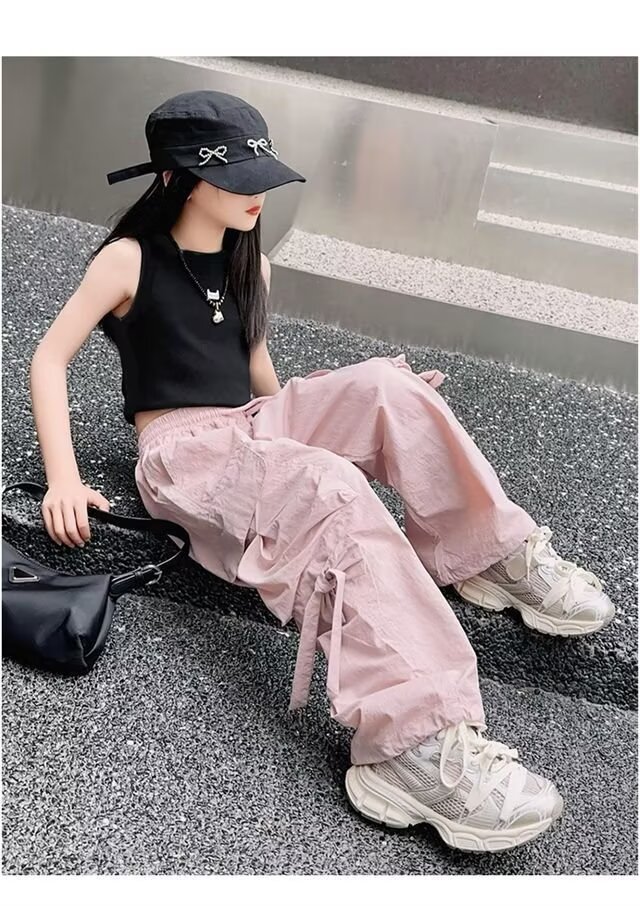 소녀 빠른 건조 크록 바지 봄과 가을 새로운 서양 스타일 캐주얼 어린이 핑크 넓은 다리 바지 달콤한 쿨 스파이스 소녀 바지스토어 가기