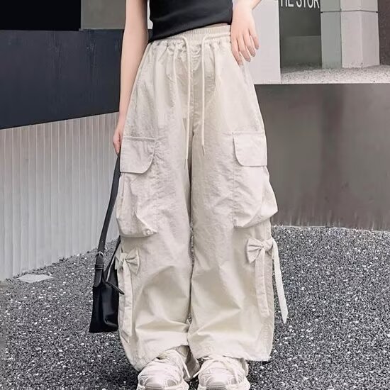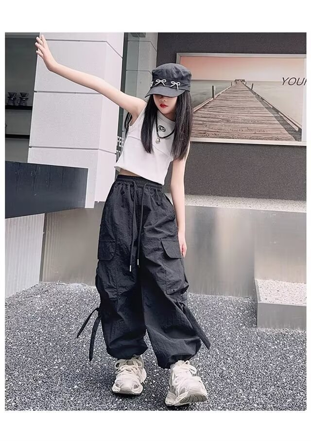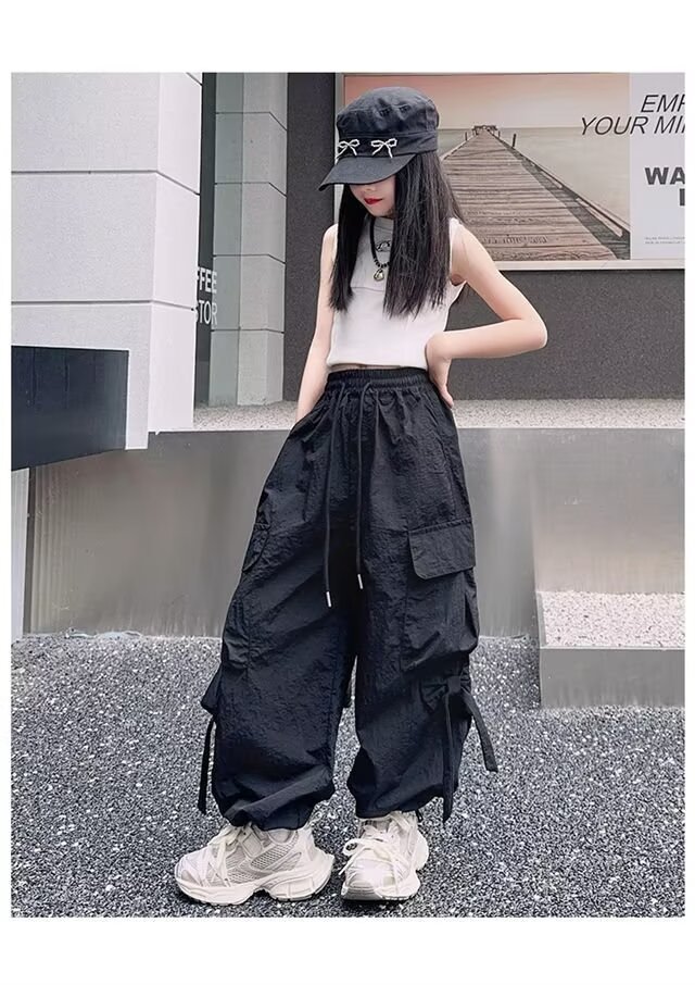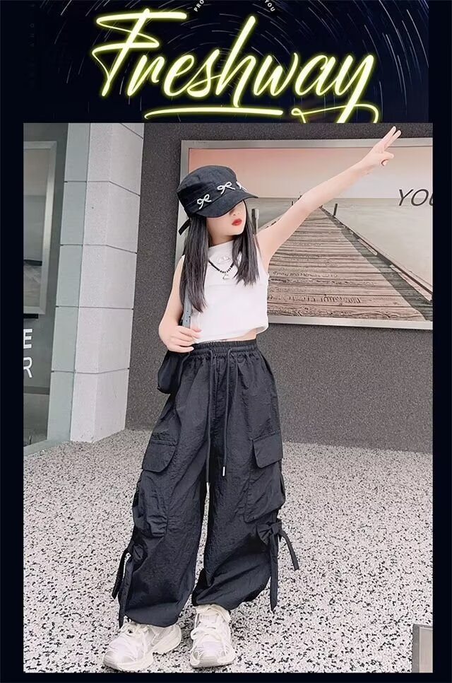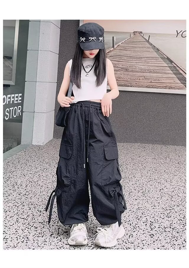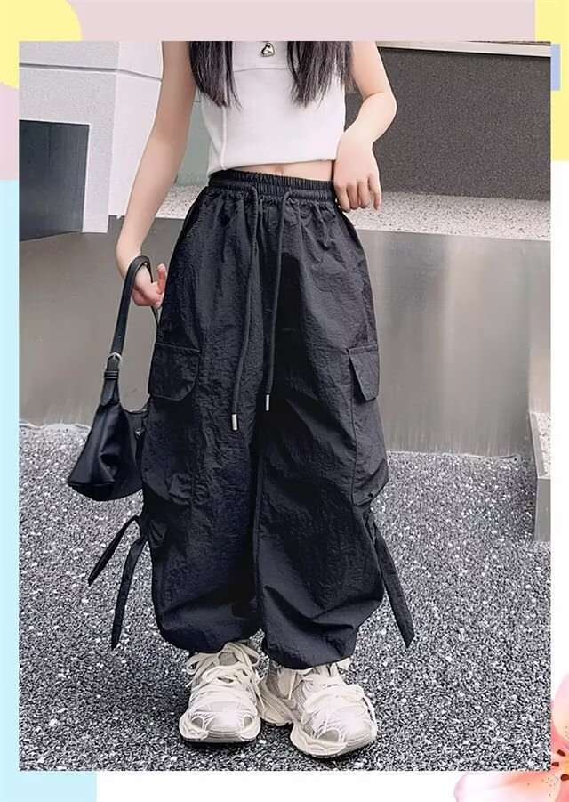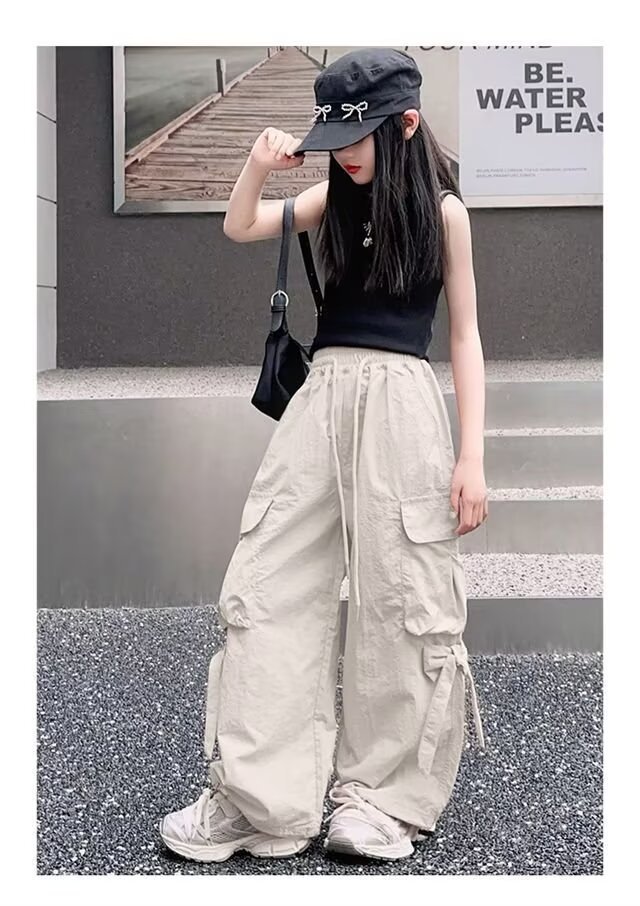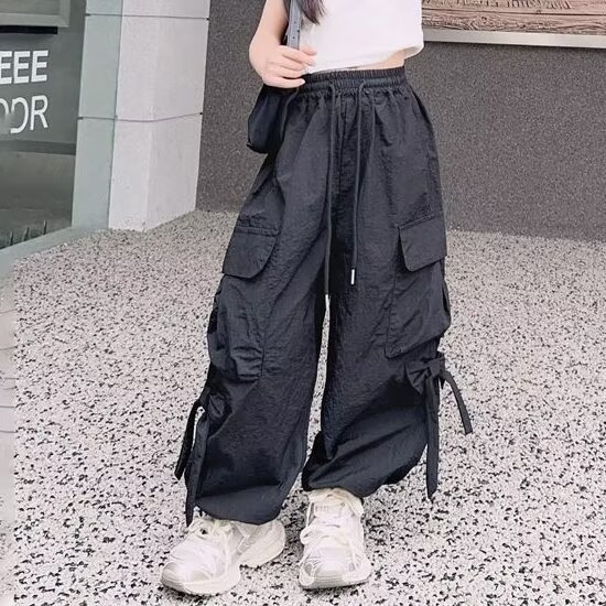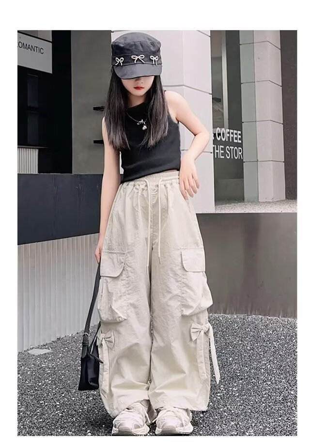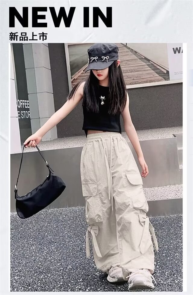 소녀 빠른 건조 크록 바지 봄과 가을 새로운 서양 스타일 캐주얼 어린이 핑크 넓은 다리 바지 달콤한 쿨 스파이스 소녀 바지스토어 가기