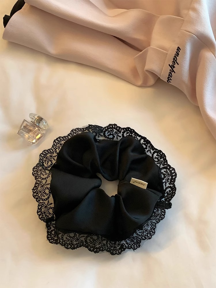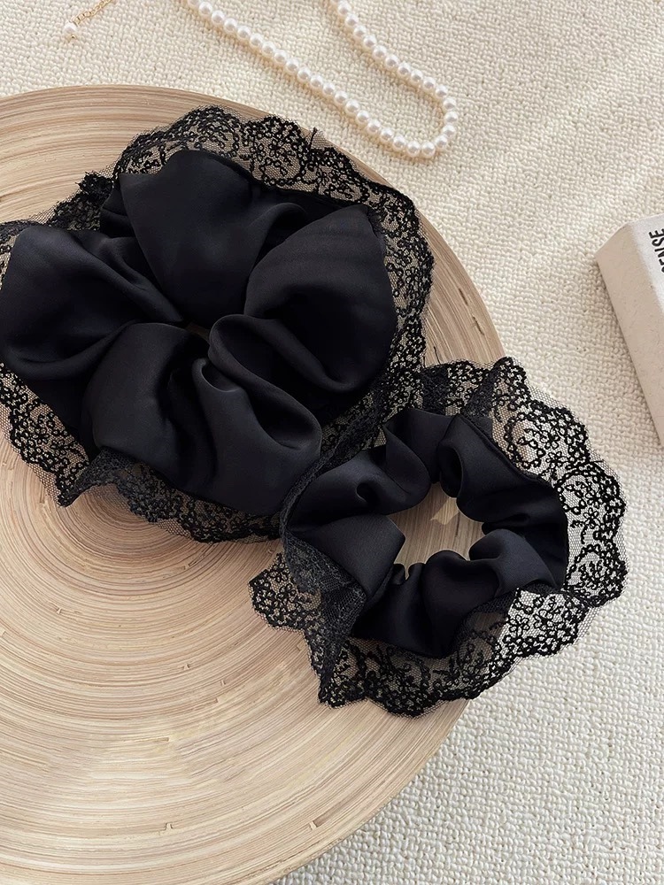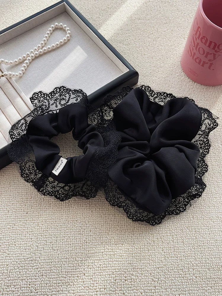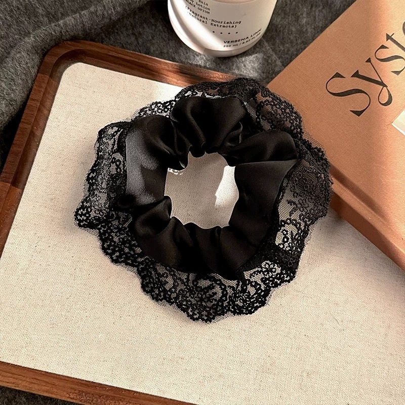 우아한 하이 엔드 프렌치 스타일 블랙 레이스 헤어 링 고무 스트랩 헤어 로프 여성용 헤어 로프 절묘한 헤어 액세서리