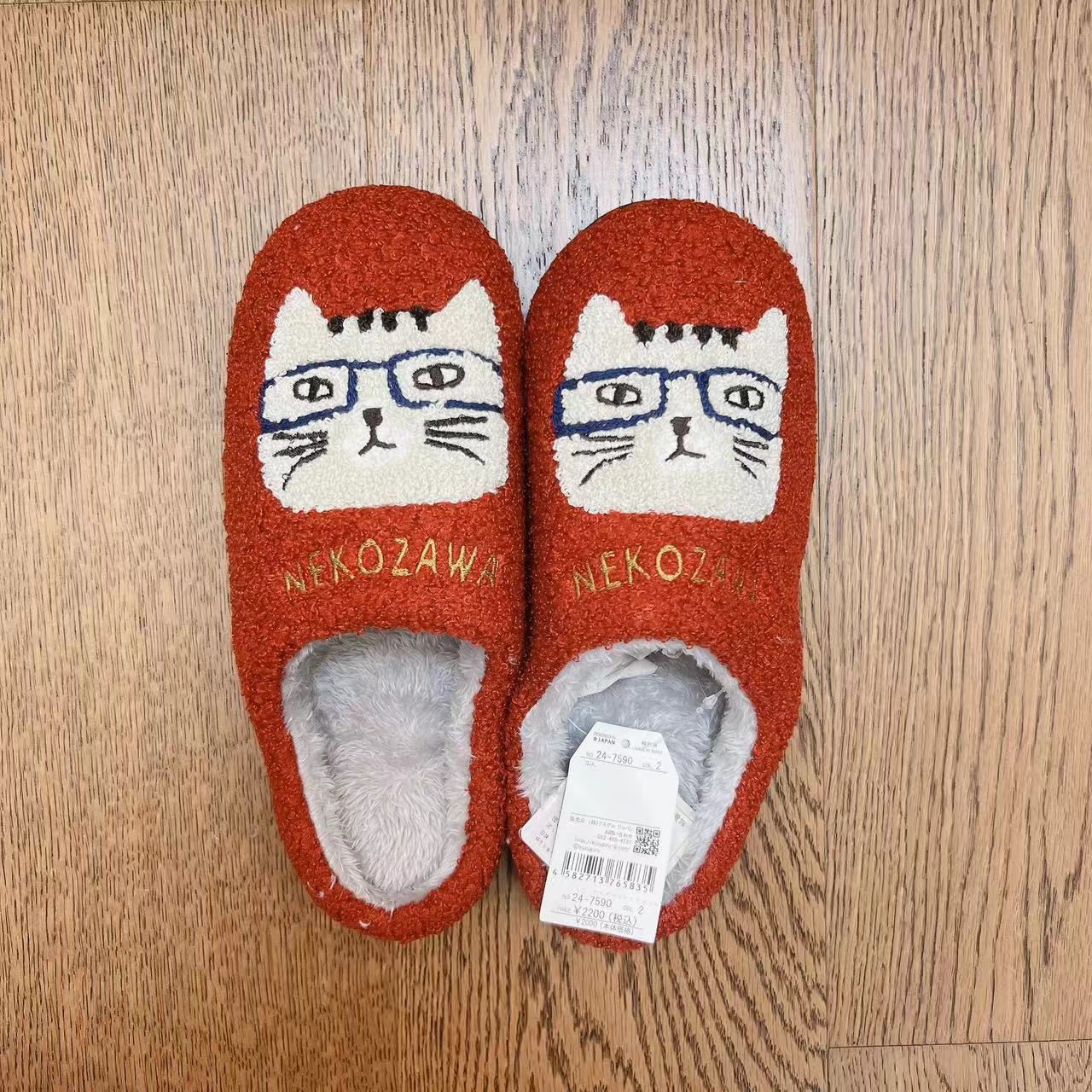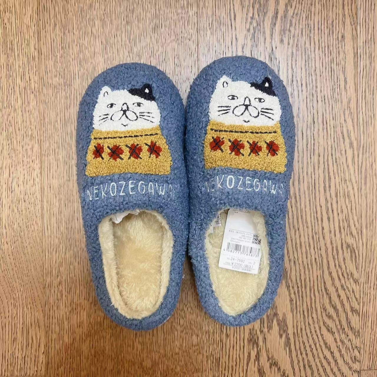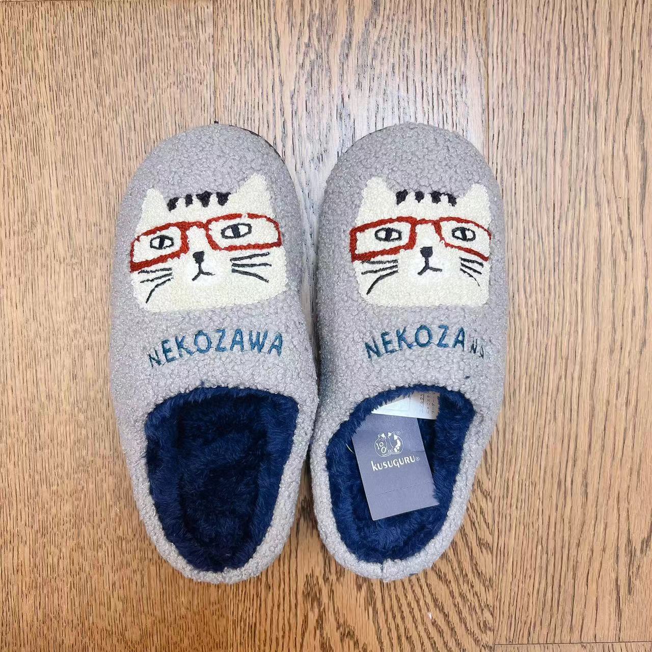 일본 쿠스구루 자수 자카드 고양이 슬리퍼 캐시미어 과립 바닥 걸레 미끄럼 방지 산후 신발 따뜻한 208스토어 가기