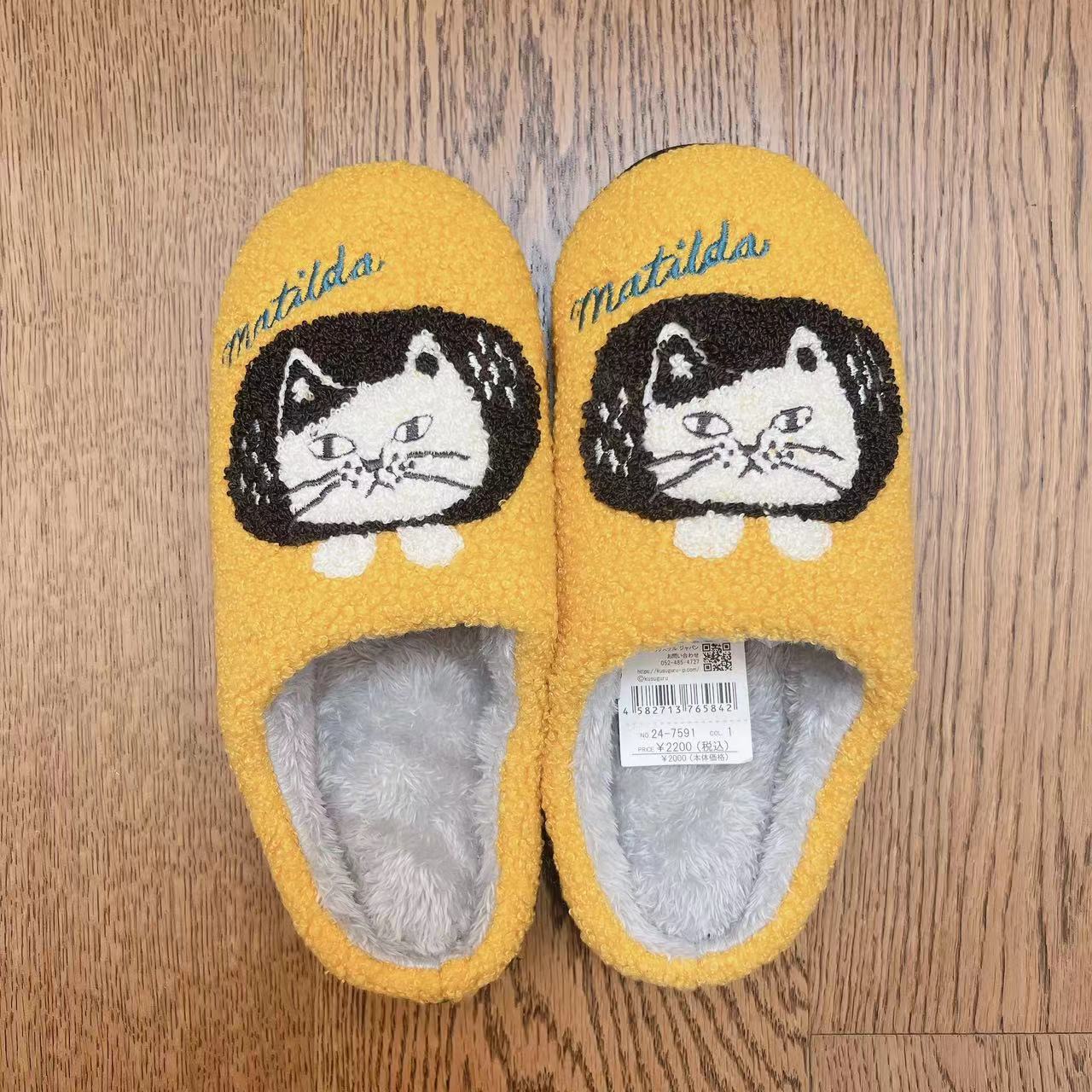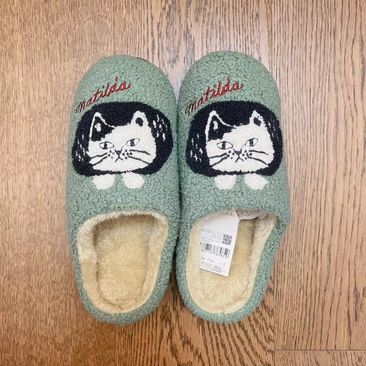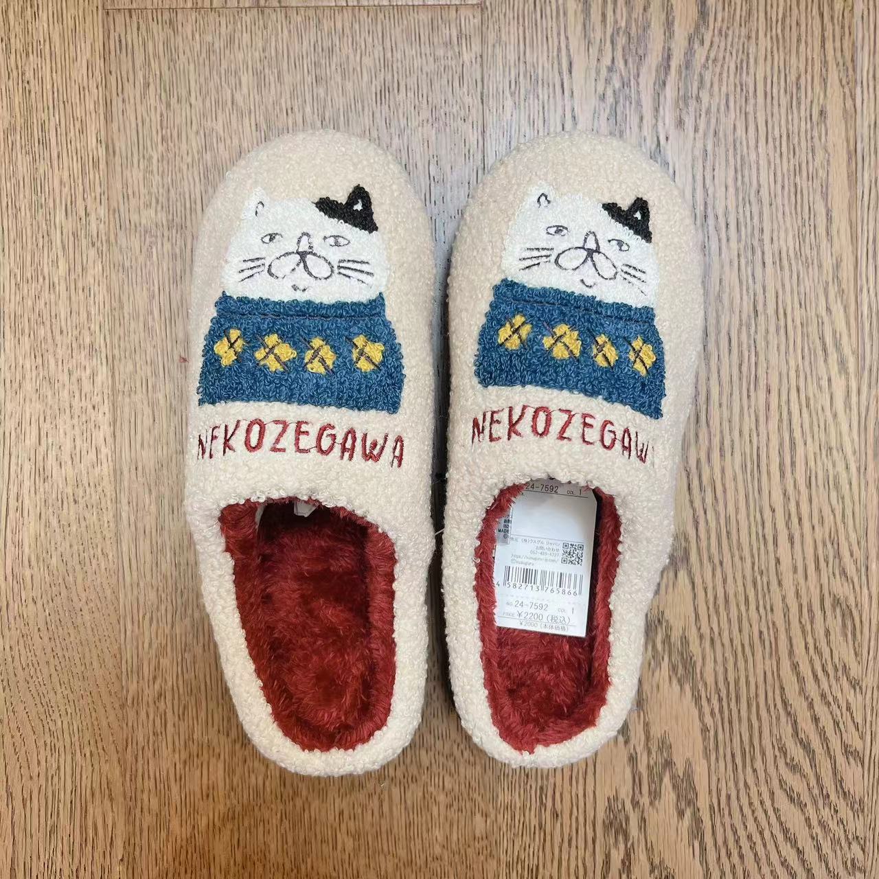 일본 쿠스구루 자수 자카드 고양이 슬리퍼 캐시미어 과립 바닥 걸레 미끄럼 방지 산후 신발 따뜻한 208스토어 가기