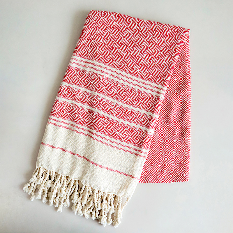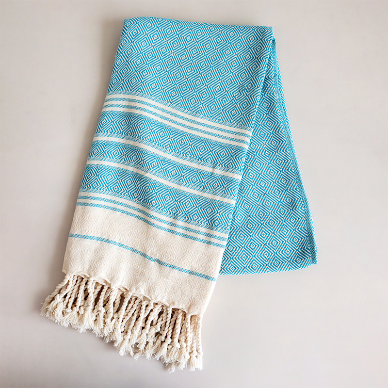 공장 스팟 터키 다이아몬드 술 비치 타월 목욕 타월 원사 염색 술 비치 타월은 라벨링 및 배송을 지원합니다.