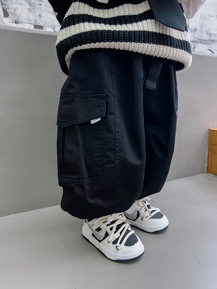 두꺼운 아동복 소년 바지 2024 가을 새로운 한국 아기 긴 바지 어린이 유행 잘 생긴 어린이 바지