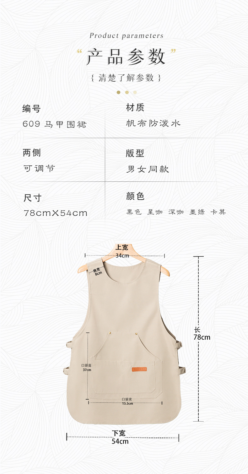 양복 조끼 스타일 앞치마 캔버스 방수 및 방유 주방 홈 바리 스타 레스토랑 작업복 조끼 인쇄 로고스토어 가기