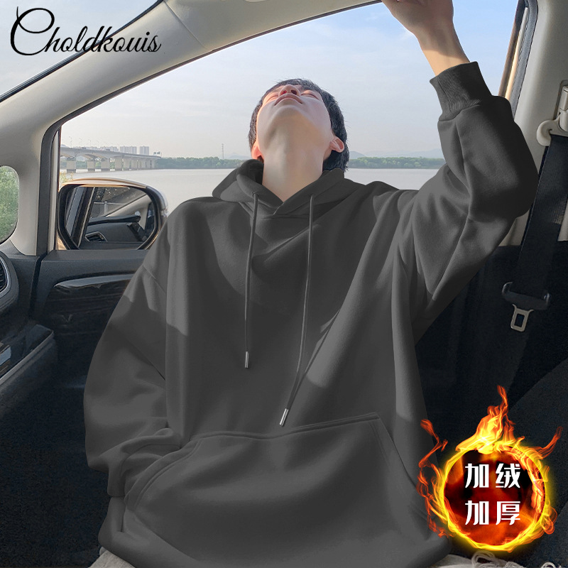 가을과 겨울 새로운 무거운 후드 스웨트 셔츠 커플 남성과 여성을위한 두꺼운 유행 브랜드 느슨한 미국 인쇄 재킷 기모