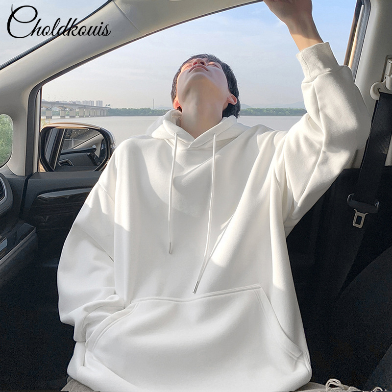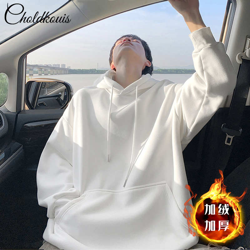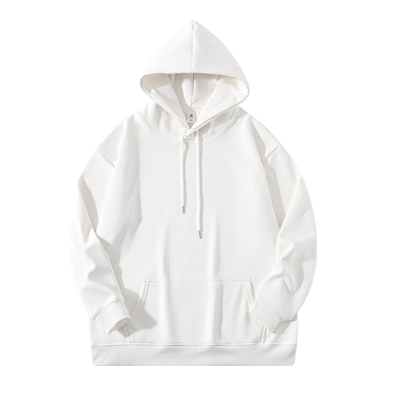 • 화이트 후드 스웨트셔츠 플러스 벨벳 - 솔리드 컬러 [GL]