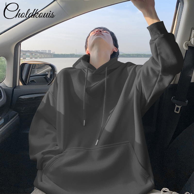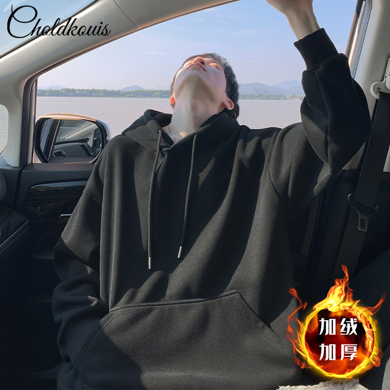 • 블랙 후드 스웨트셔츠와 벨벳 스타일 - 솔리드 컬러 [GL]