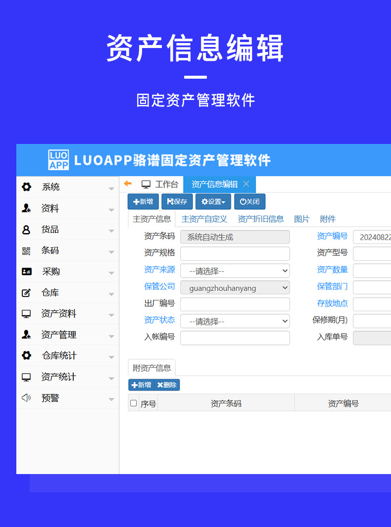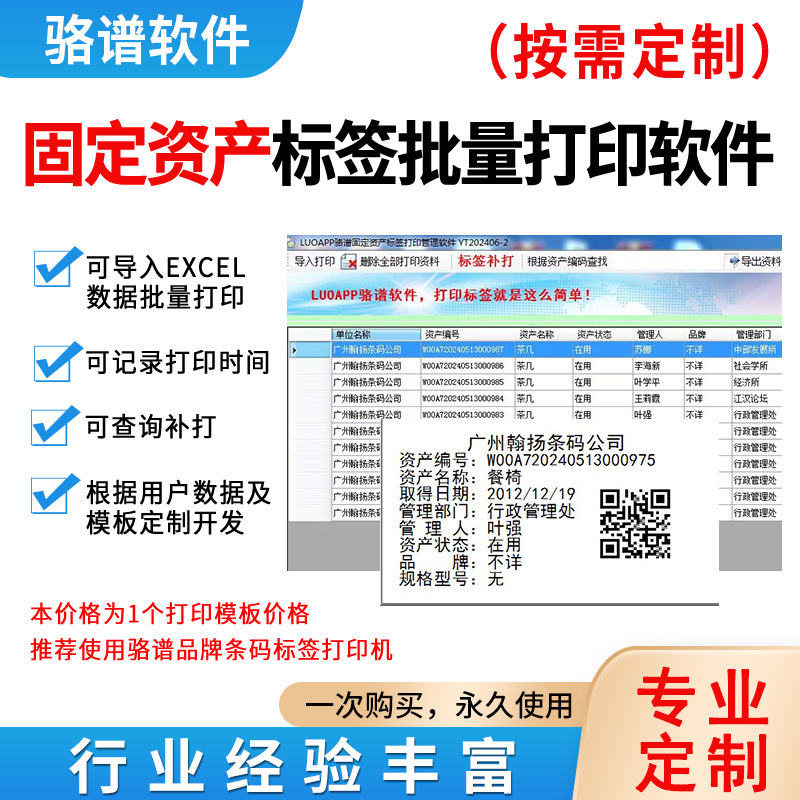 Luo 스펙트럼 고정 자산 관리 시스템 소프트웨어 RFID 바코드 재고 자료 관리 파일 소프트웨어 개발.