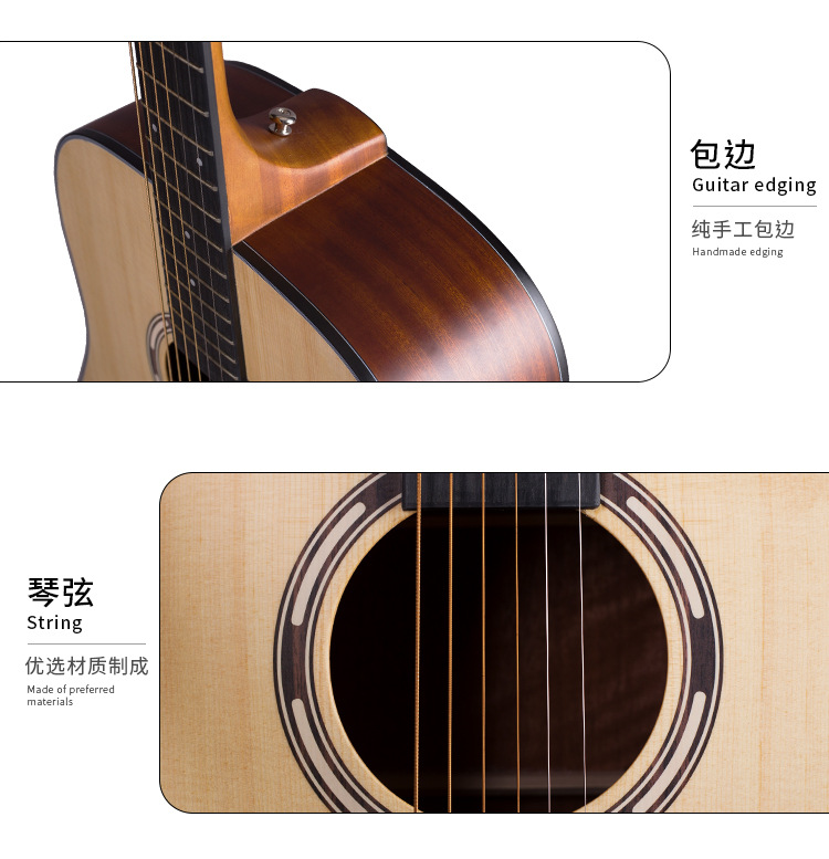 41inch 포지티브 버킷 포크 기타 매트 스프루스 사펠리 둥근 모서리 어쿠스틱 기타 학생용 입문 악기 공장