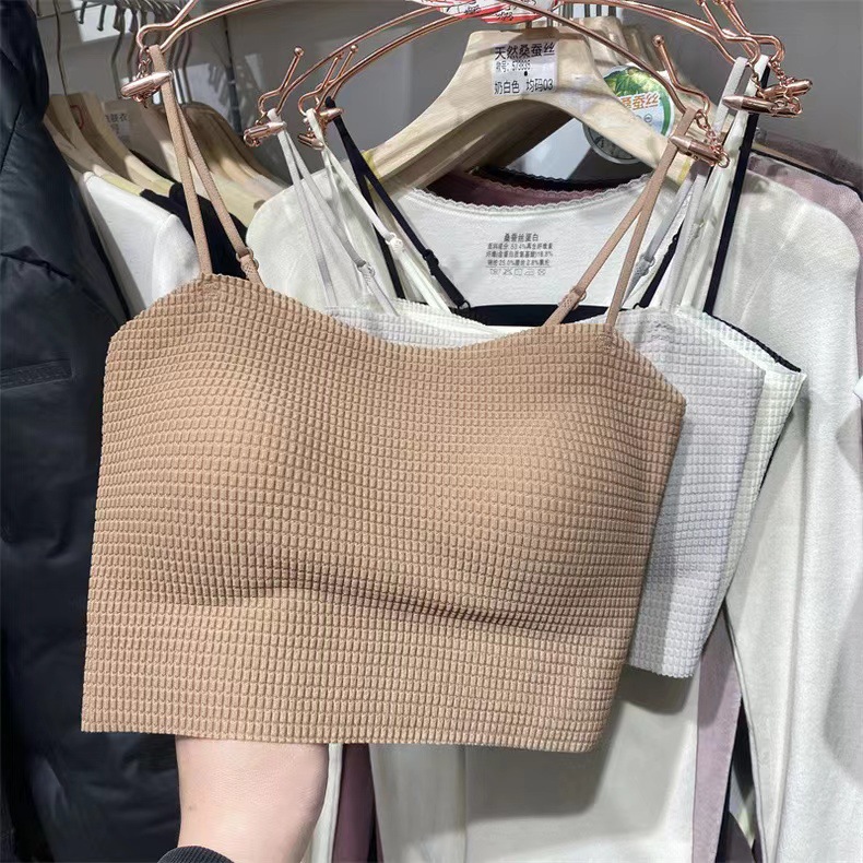 프렌치 스타일 라이트 럭셔리 하이 엔드 심플 솔리드 컬러 원라인 브래킷 속옷 여성용 눈부심 방지 캐주얼 올 매치 브래킷 슬링 가슴 패드스토어 가기