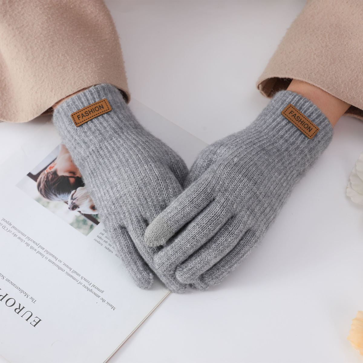 니트 따뜻한 장갑 야외 사이클링 감기 방지 봉제 터치 스크린 손가락 학생 남성과 여성의 따뜻한 공장 장갑