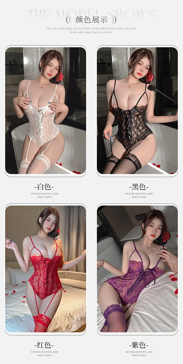 새로운 섹시한 레이스 관점 타이트 허리 점프 수트 크로스 스트랩 핫 유혹 섹스 란제리 여성의 8562