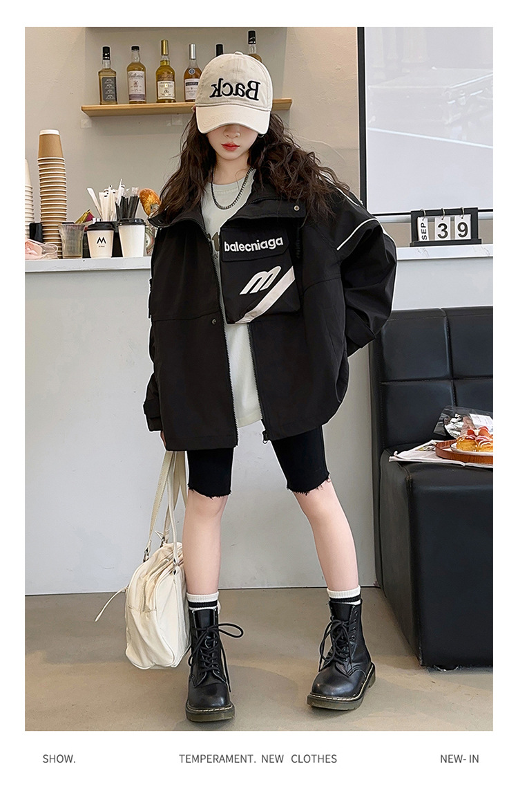 소녀 충전 옷 봄과 가을 코트 느슨한 캐주얼 가을 새로운 올 매치 재킷 큰 어린이 최고 인터넷 인기 외국 스타일