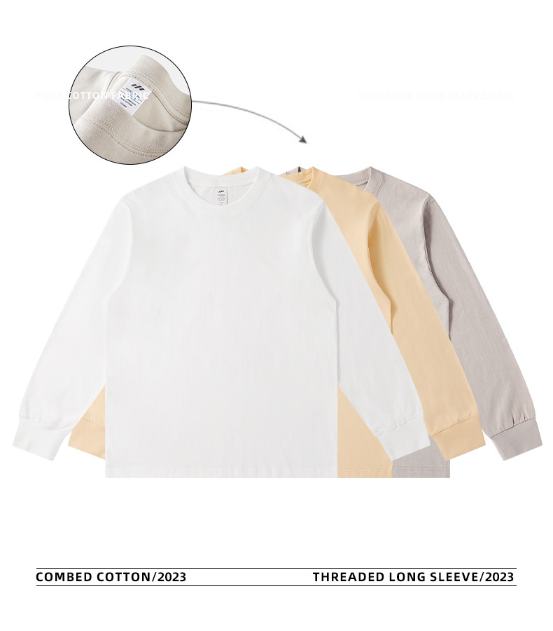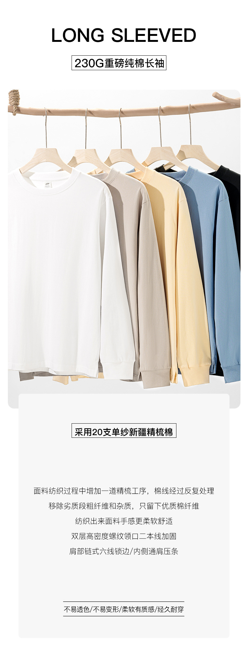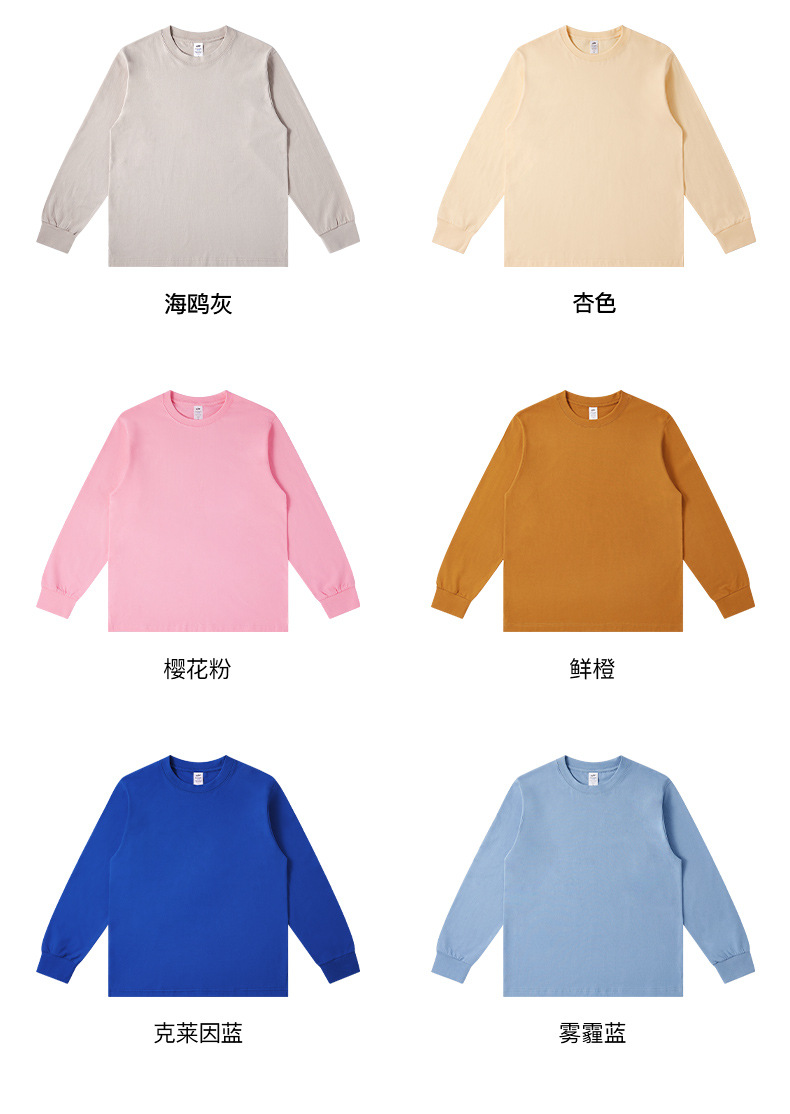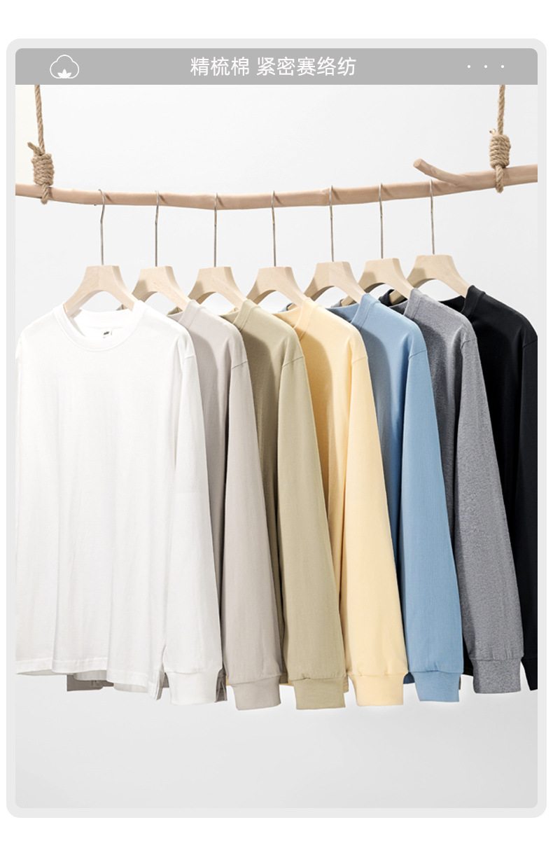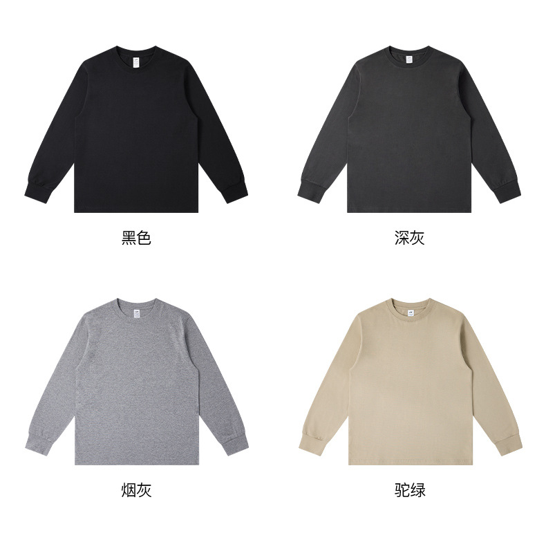230g 중면 스레드 긴 소매 티셔츠 남성과 청소년 가을 간단한 조커 라운드 넥 솔리드 컬러 베이스 셔츠스토어 가기