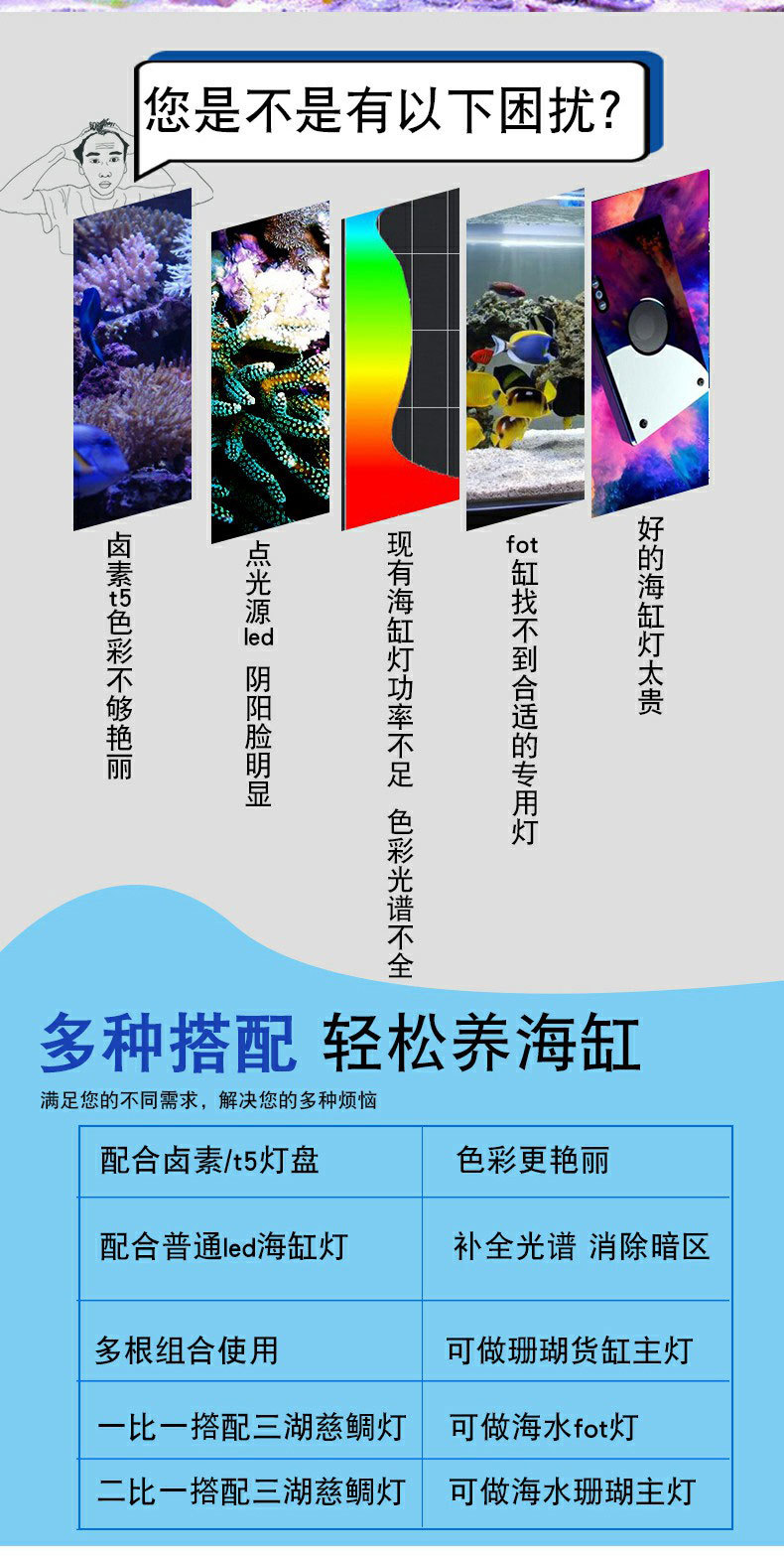 Jiyin Blade LEO 전문 해수 보조 조명 바다 탱크 산호 탱크 FOT 블루 헤어 컬러 부스터 라이트 산호 램프스토어 가기