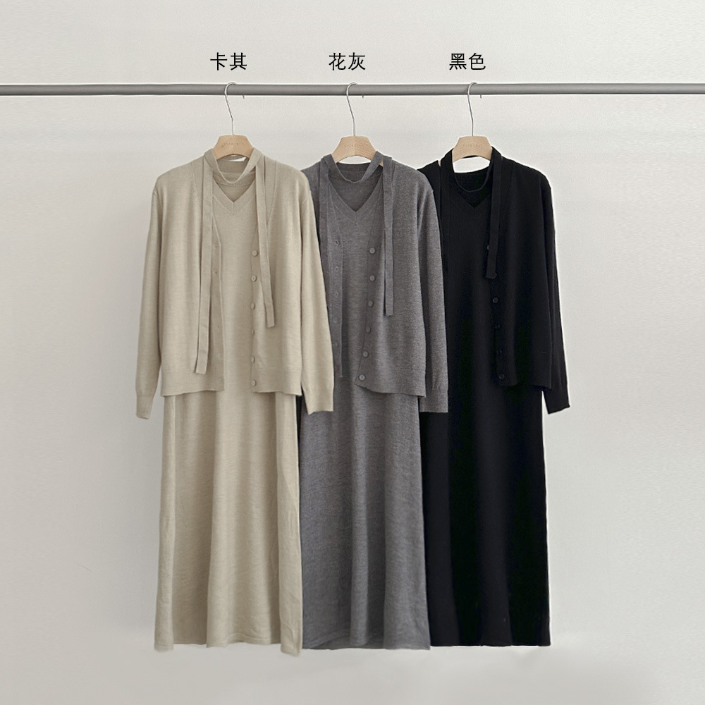 EVERTRUE 캐시미어 스커트 세트 여성용 긴팔 V넥 니트 탑 V넥 민소매 조끼 스커트 65551스토어 가기
