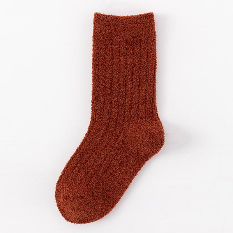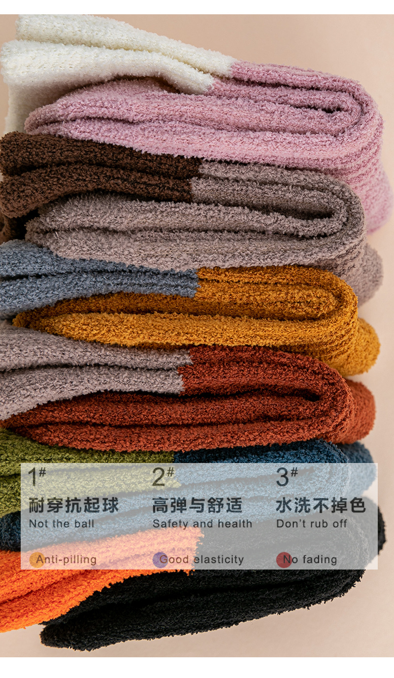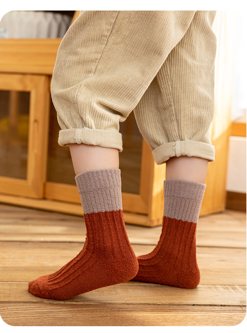 가을과 겨울 남학생과 여학생 산호 양털 양말 두꺼운 트렌디 양말 따뜻한 중형 롱 튜브 남녀 하프 양털 양말