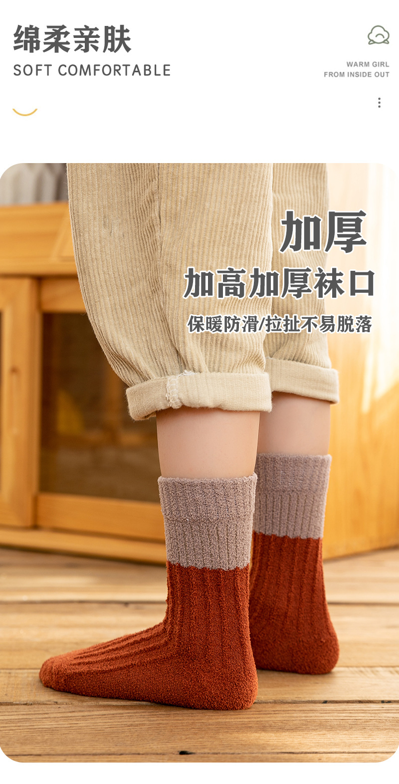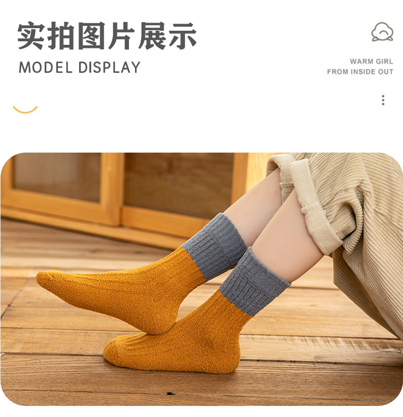 가을과 겨울 남학생과 여학생 산호 양털 양말 두꺼운 트렌디 양말 따뜻한 중형 롱 튜브 남녀 하프 양털 양말스토어 가기