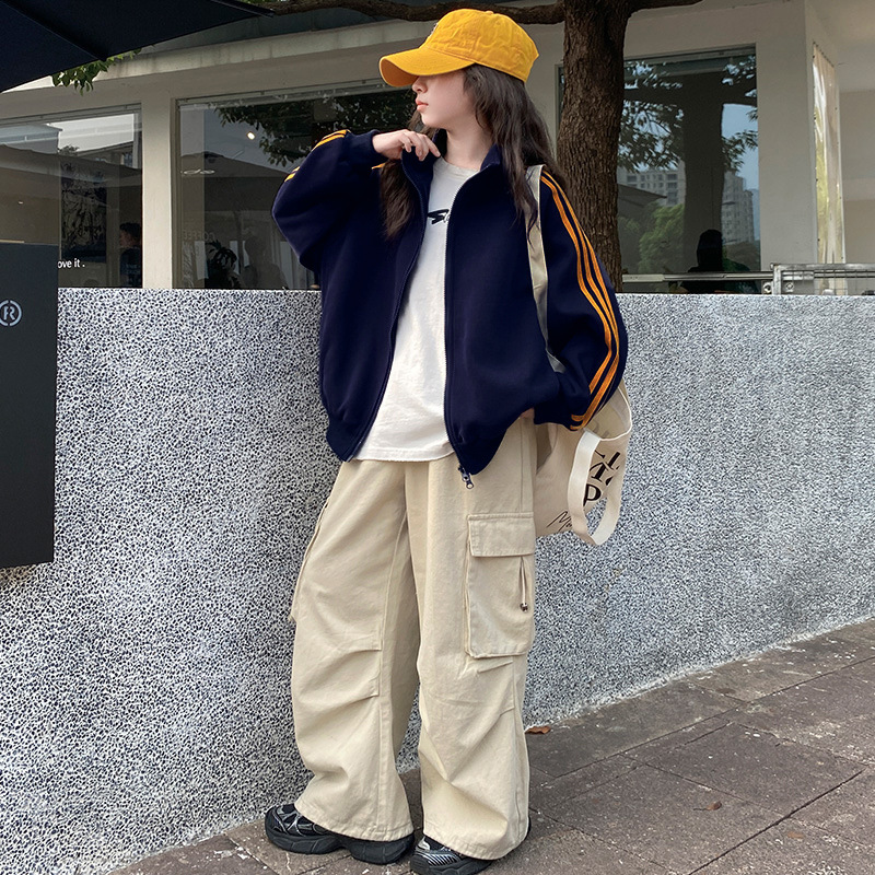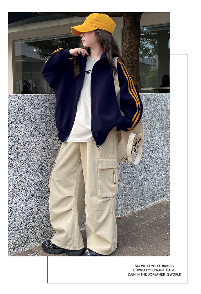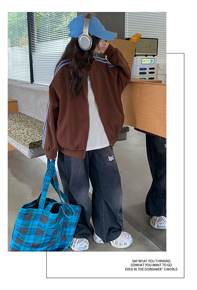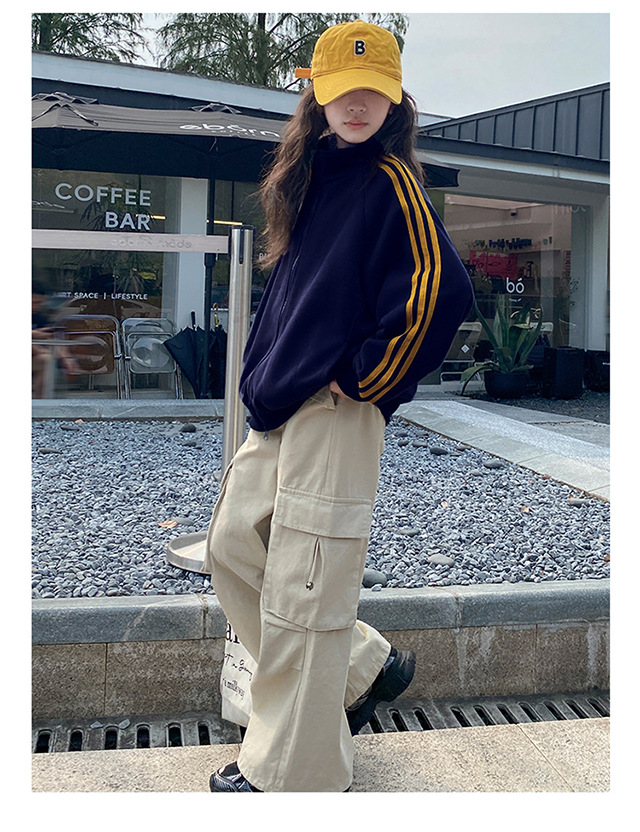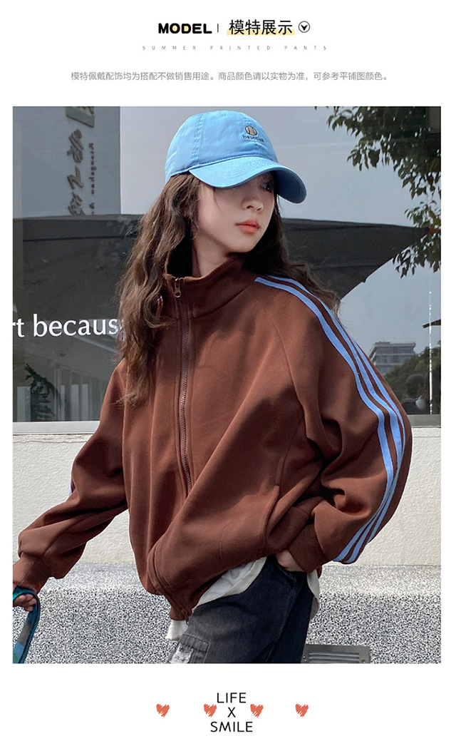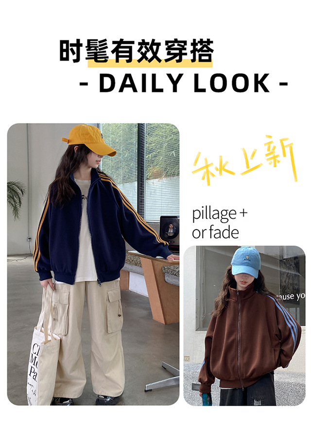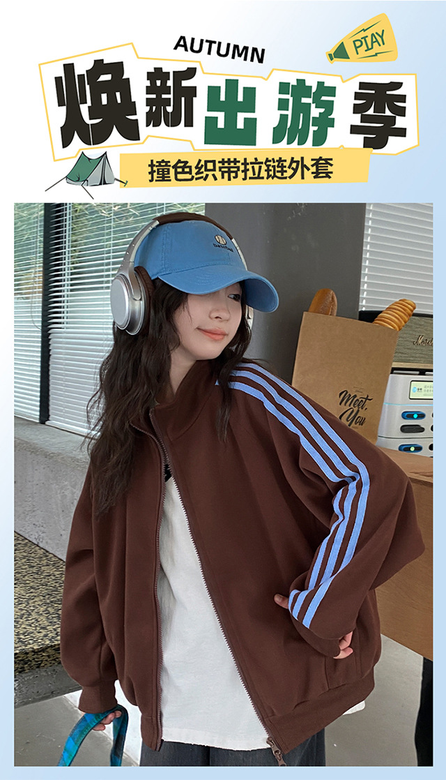 撞色织带拉链外套_08