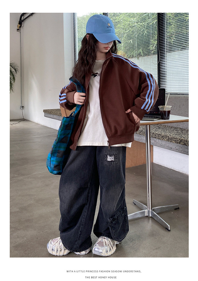 소녀 지퍼 재킷 봄과 가을 2024 새로운 어린이 가을 서양식 패션 소녀 스포츠 캐주얼 탑