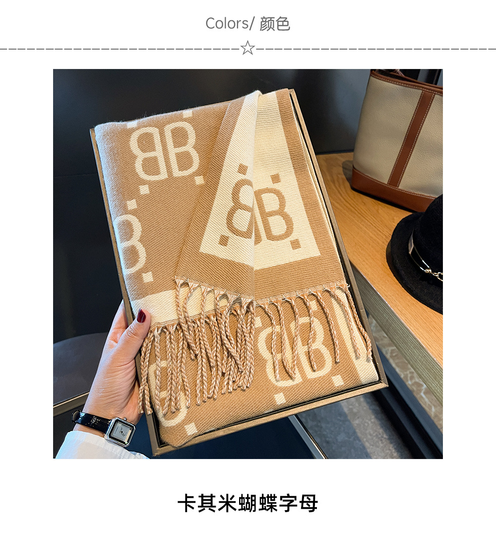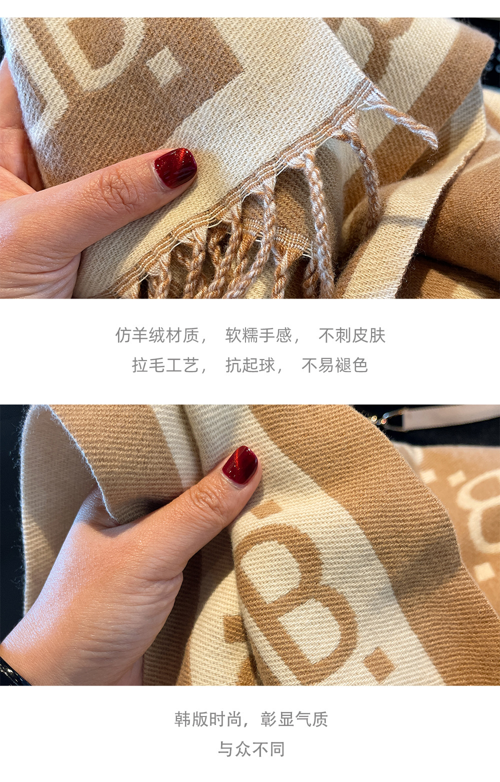 经典字母B双面双色仿羊绒围巾女秋冬季长款保暖外搭披肩围脖两用