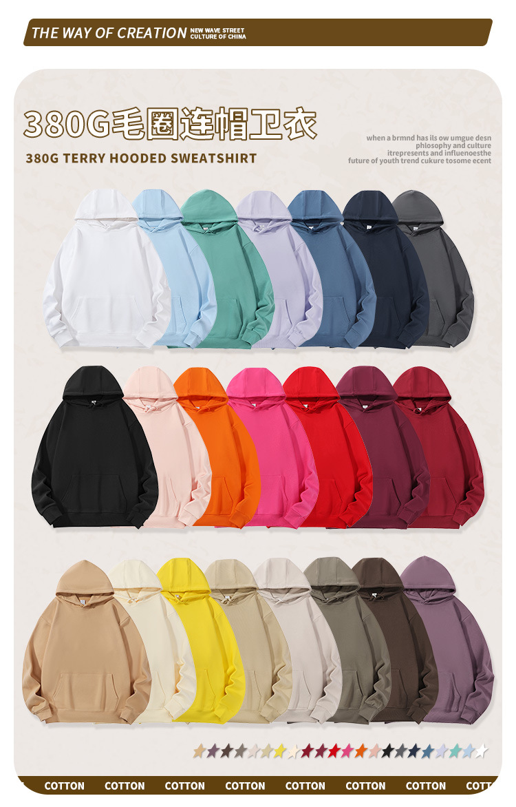 380g 테리 후드 순면 스웨트셔츠, 아메리칸 레트로 스타일, 루즈핏, 헤비웨이트 후드티, 패셔너블한 맞춤 제작, 다용도, 순면, 두꺼운 소재스토어 가기