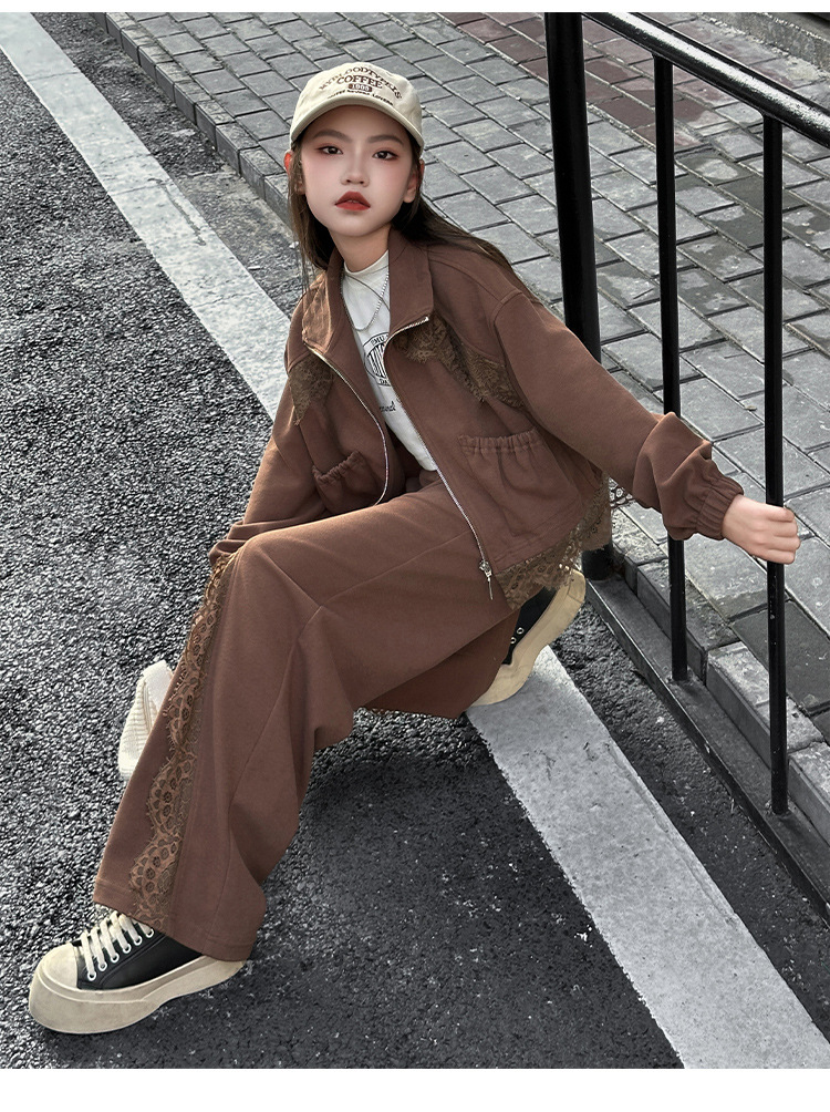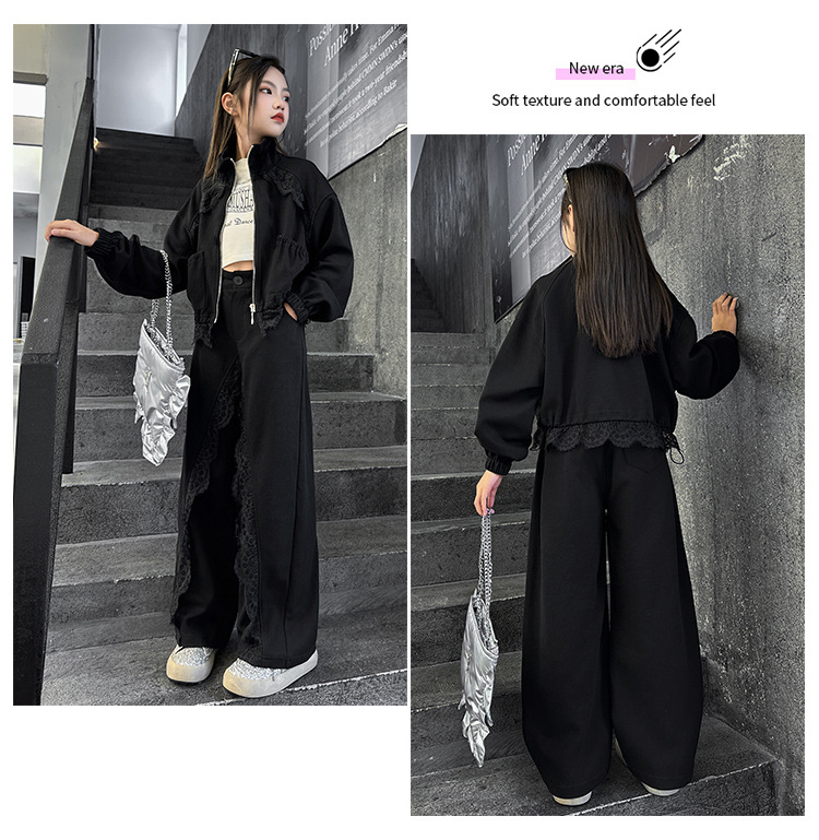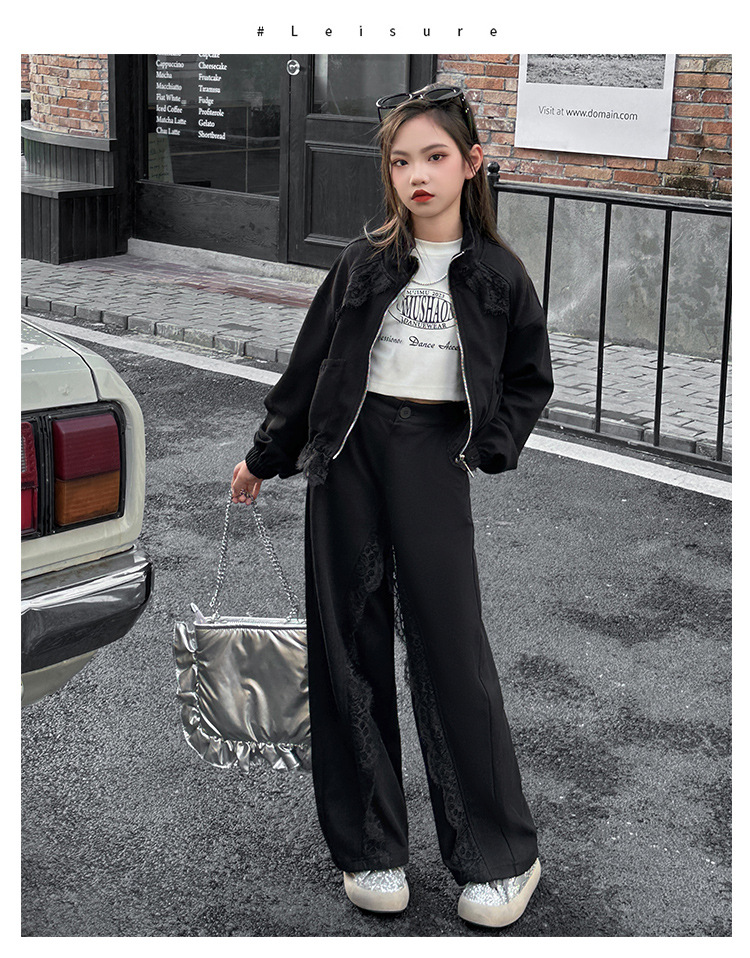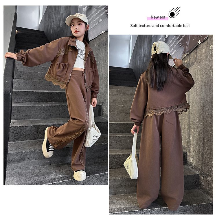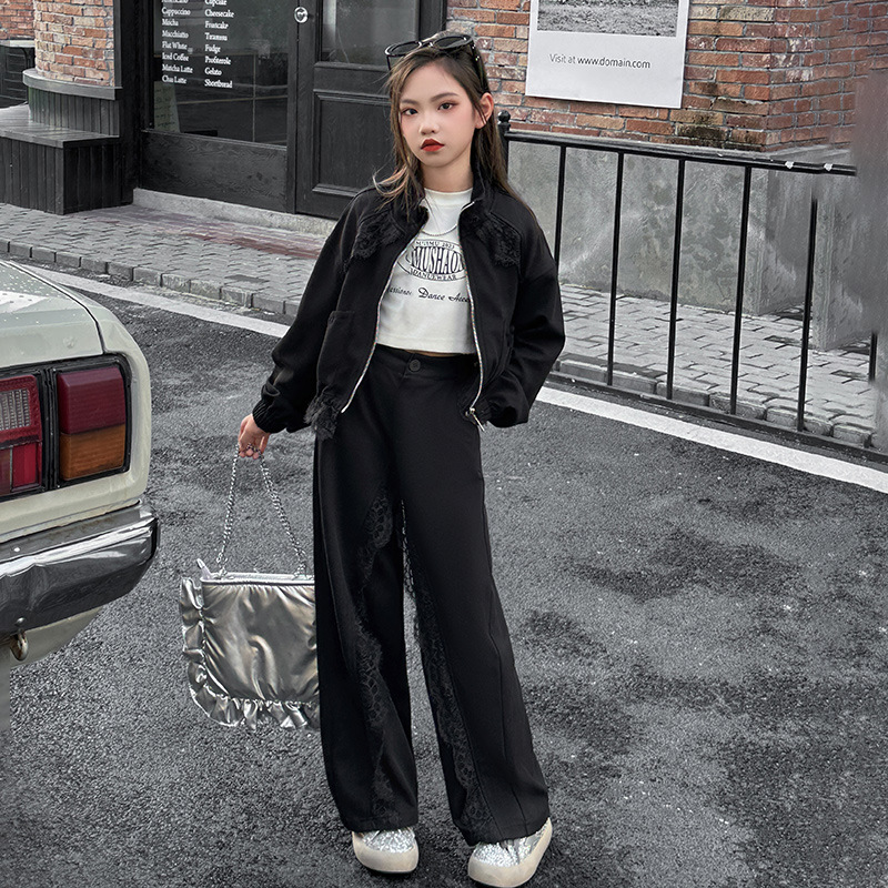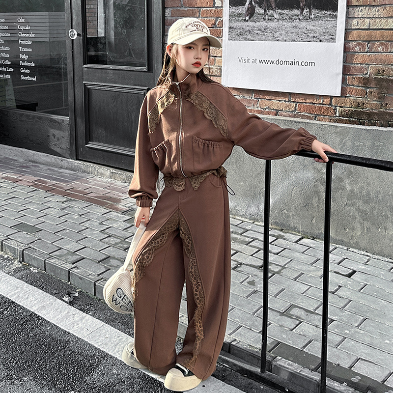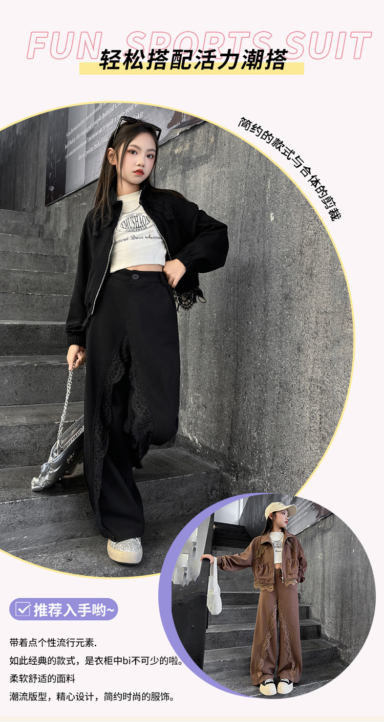 소녀의 봄과 가을 세트 2024 새로운 가을 어린이 서양식 유행 중형 및 대형 아동복 스포츠 레저 투피스 세트